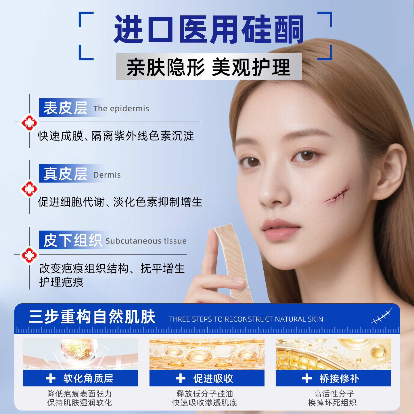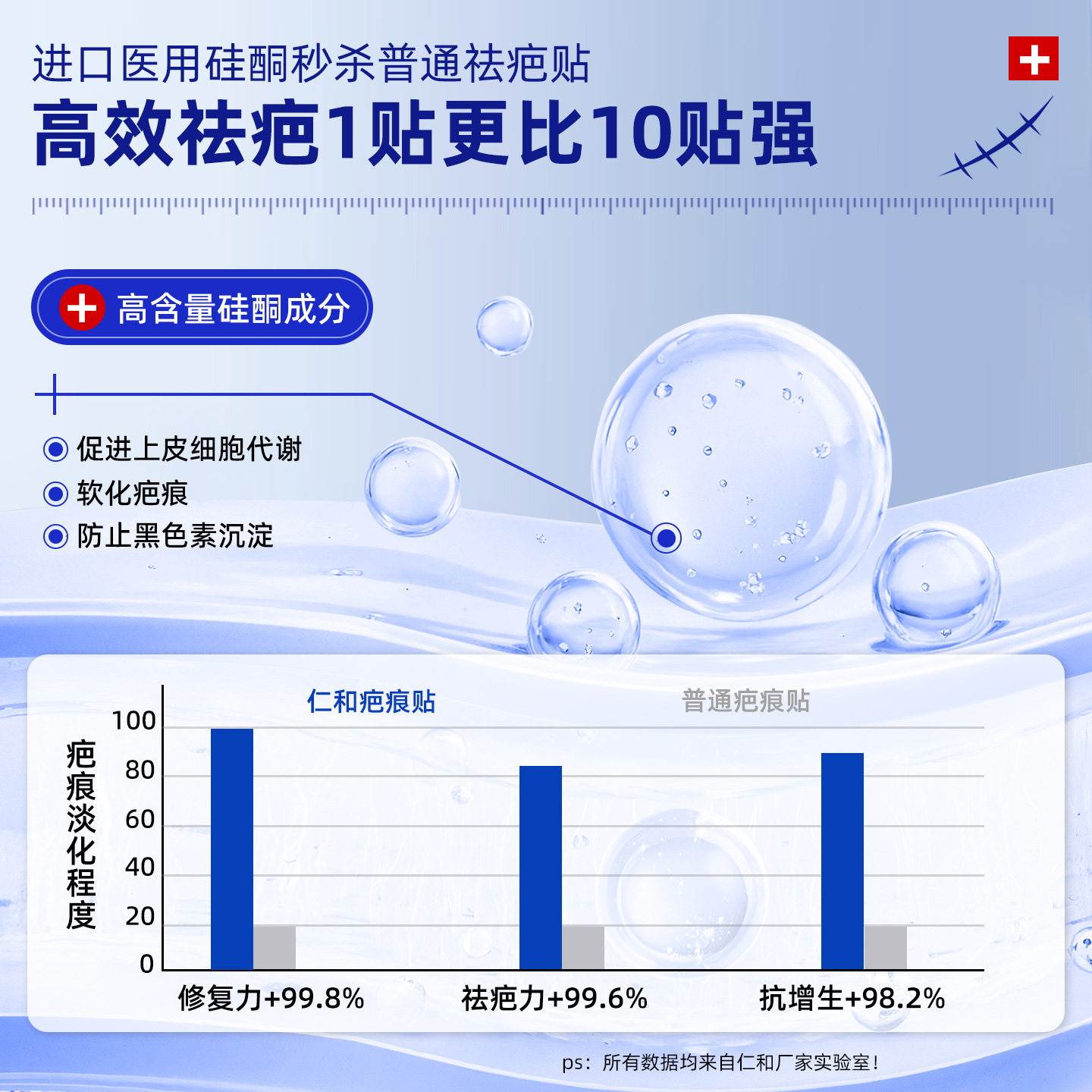 仁和疤痕贴医用硅凝胶祛疤手术烫伤剖腹产烧伤增生护理隐形产品