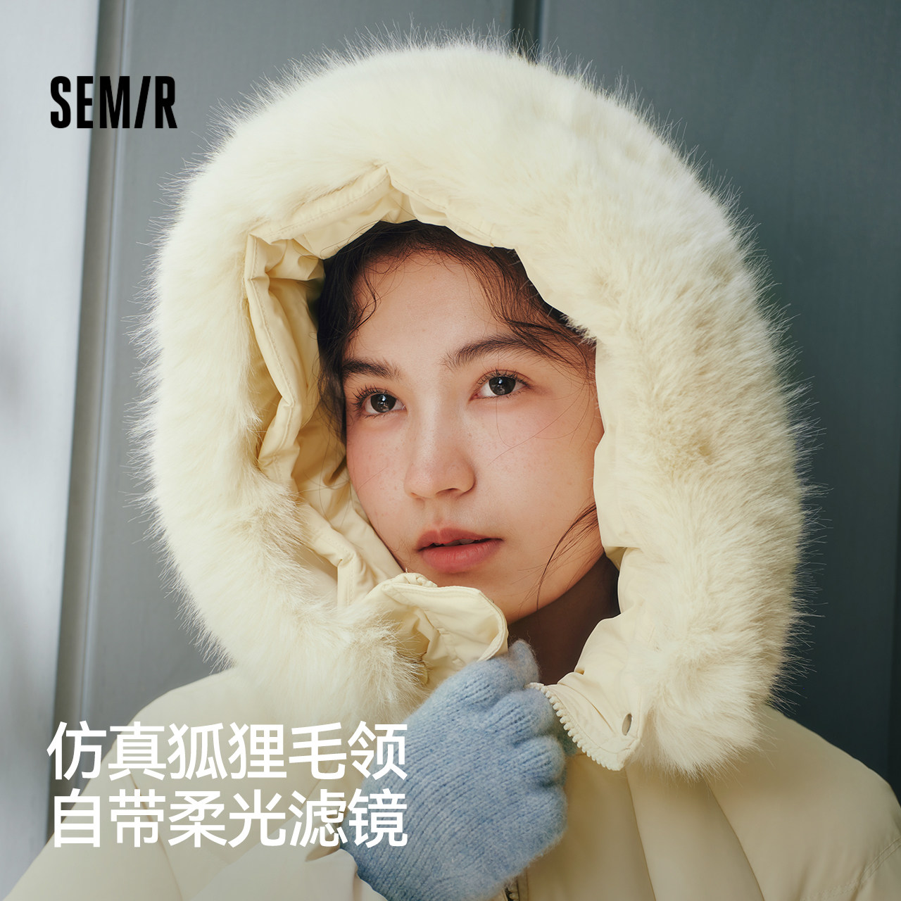 女冬外套 2025新款 森马长款 羽绒服90绒子可拆卸毛领连帽分割插肩袖