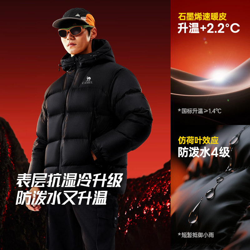 骆驼火山羽绒服男2.0机能版 情侣连帽加厚面包外套 2026秋冬新款