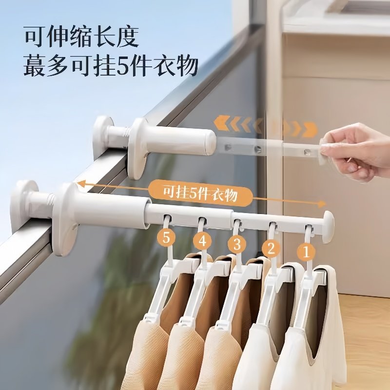 阳台晾衣架晒鞋 架 子神器室外护栏防盗窗户折叠晾晒杆窗台伸缩凉鞋
