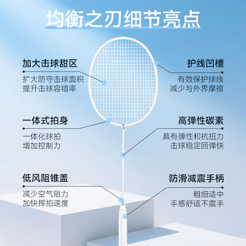 Dracaena 幸均衡之刃羽毛球拍24磅初学者专业训练全碳素单拍耐打