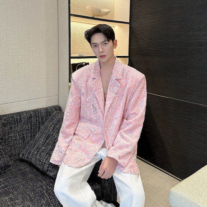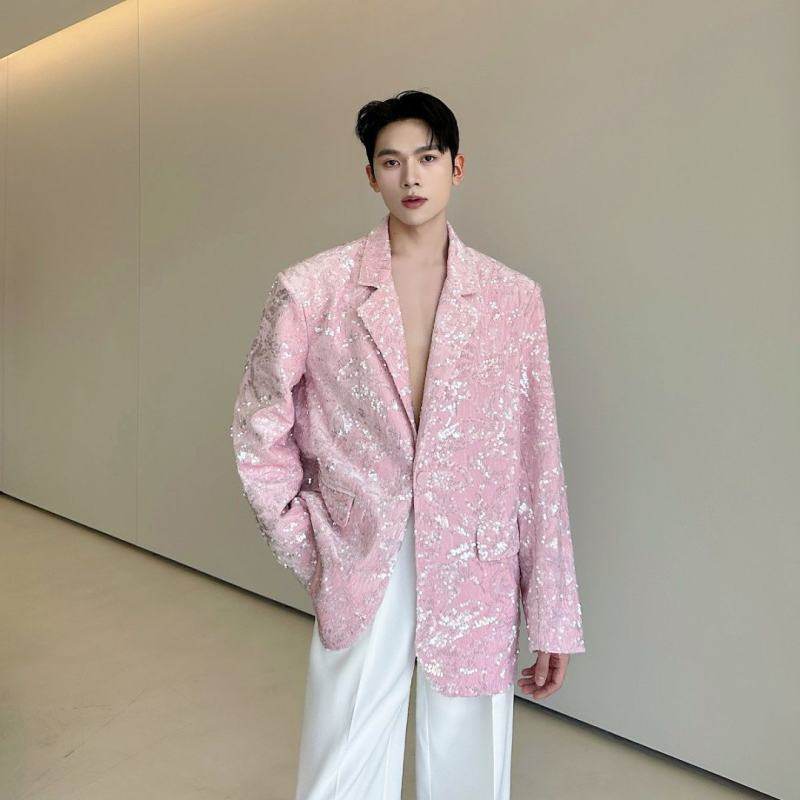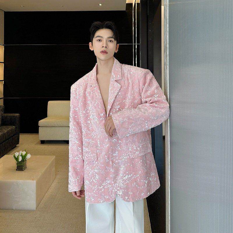 丝绒亮片垫肩宽松休闲西服外套男高级感宴会舞台礼服西装 秋装 时尚