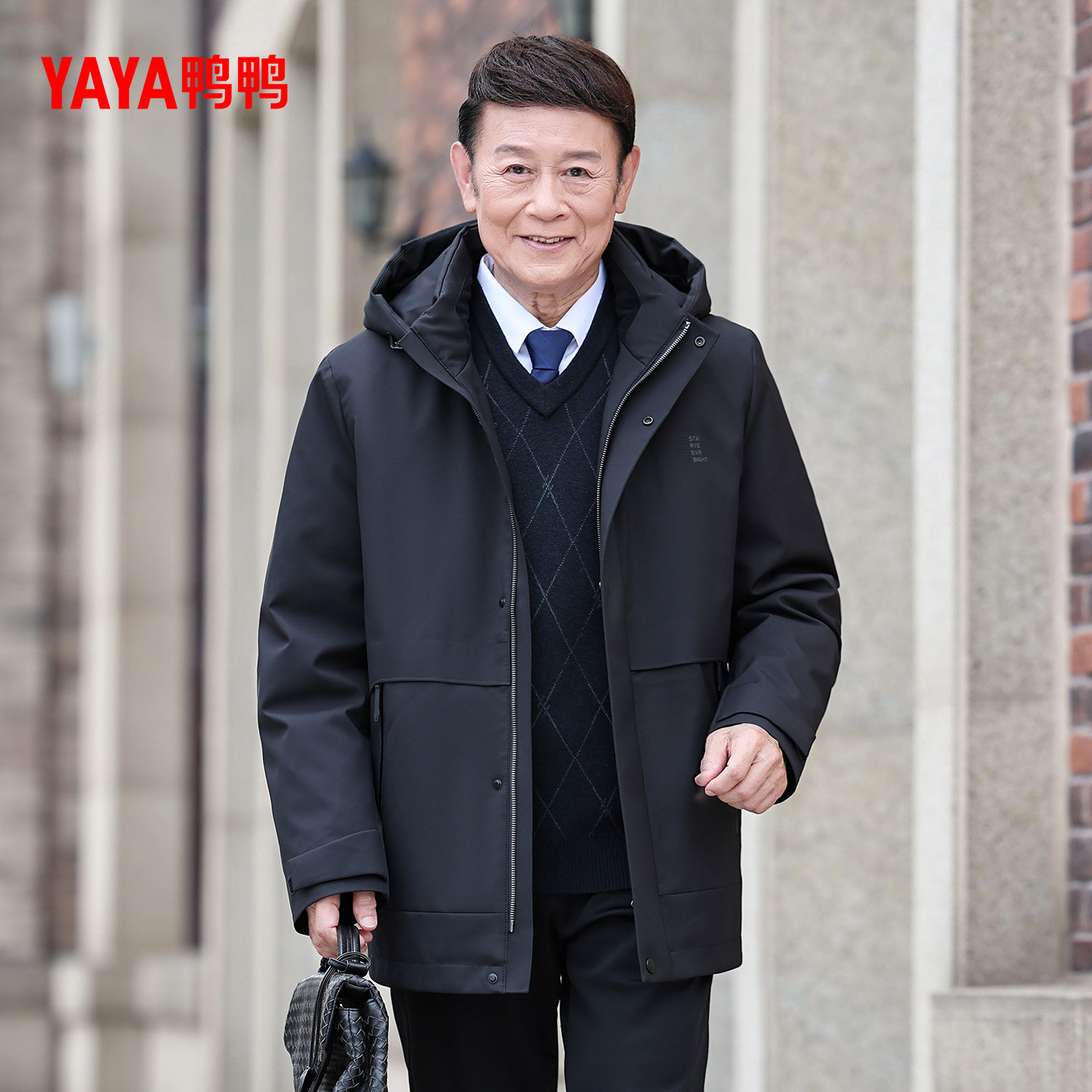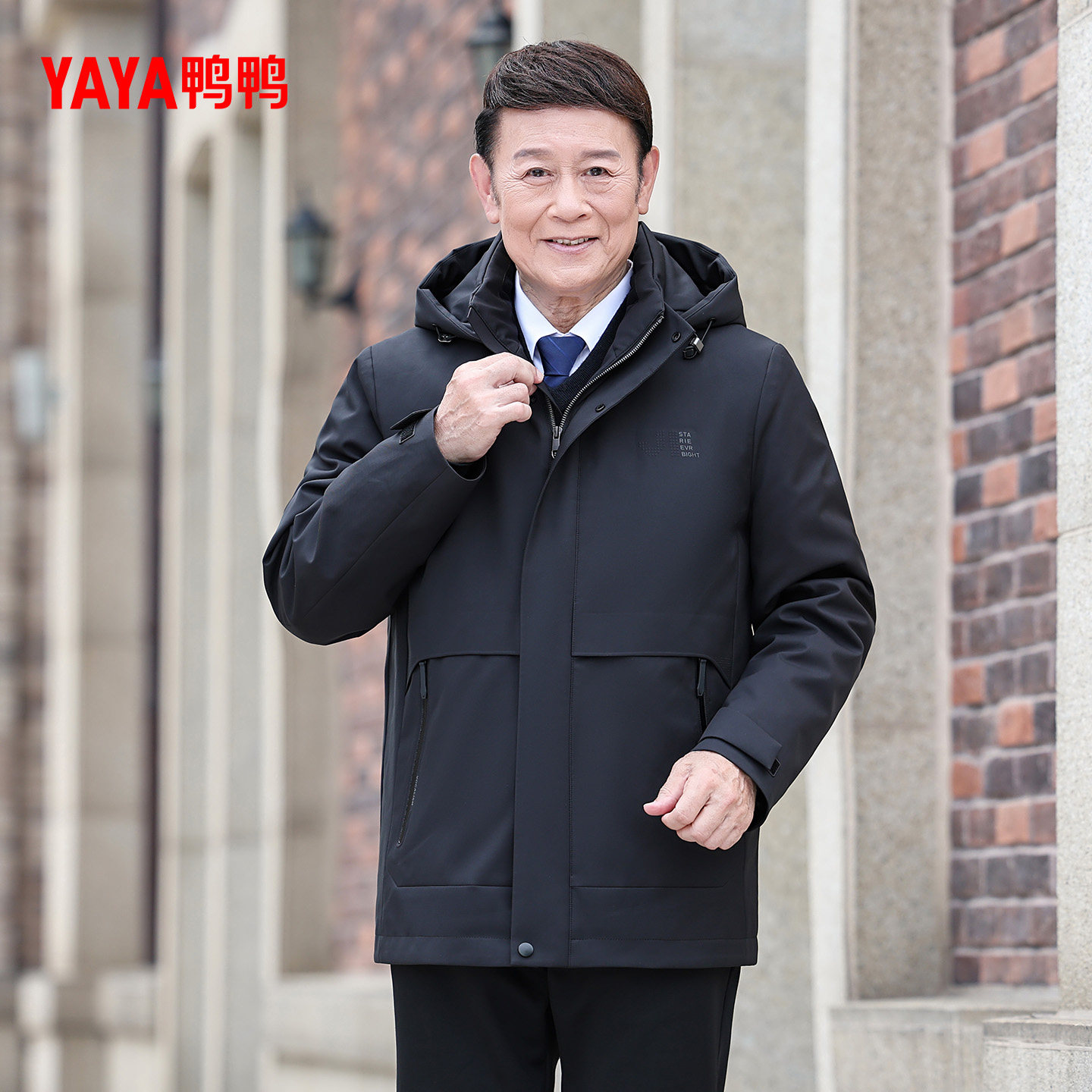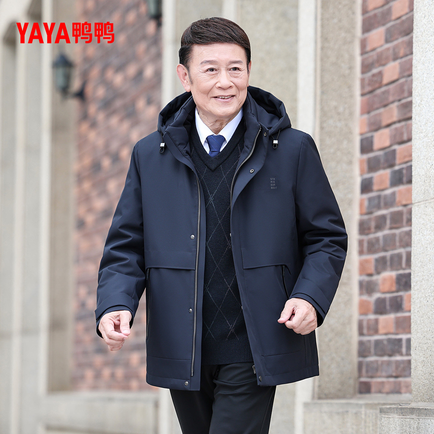 鸭鸭羽绒服男2025年秋冬新款 百搭鹅绒短外套M 中老年连帽休闲时尚