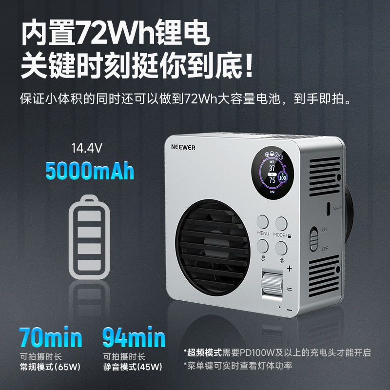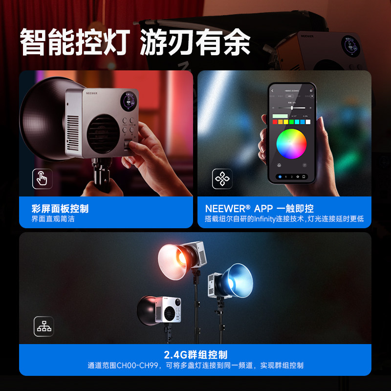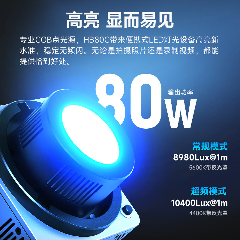 NEEWER纽尔HB80C补光灯拍摄专用COB双色温RGB全彩80W直播打光灯夜景人像户外摄影灯内置电池保荣卡口常亮灯