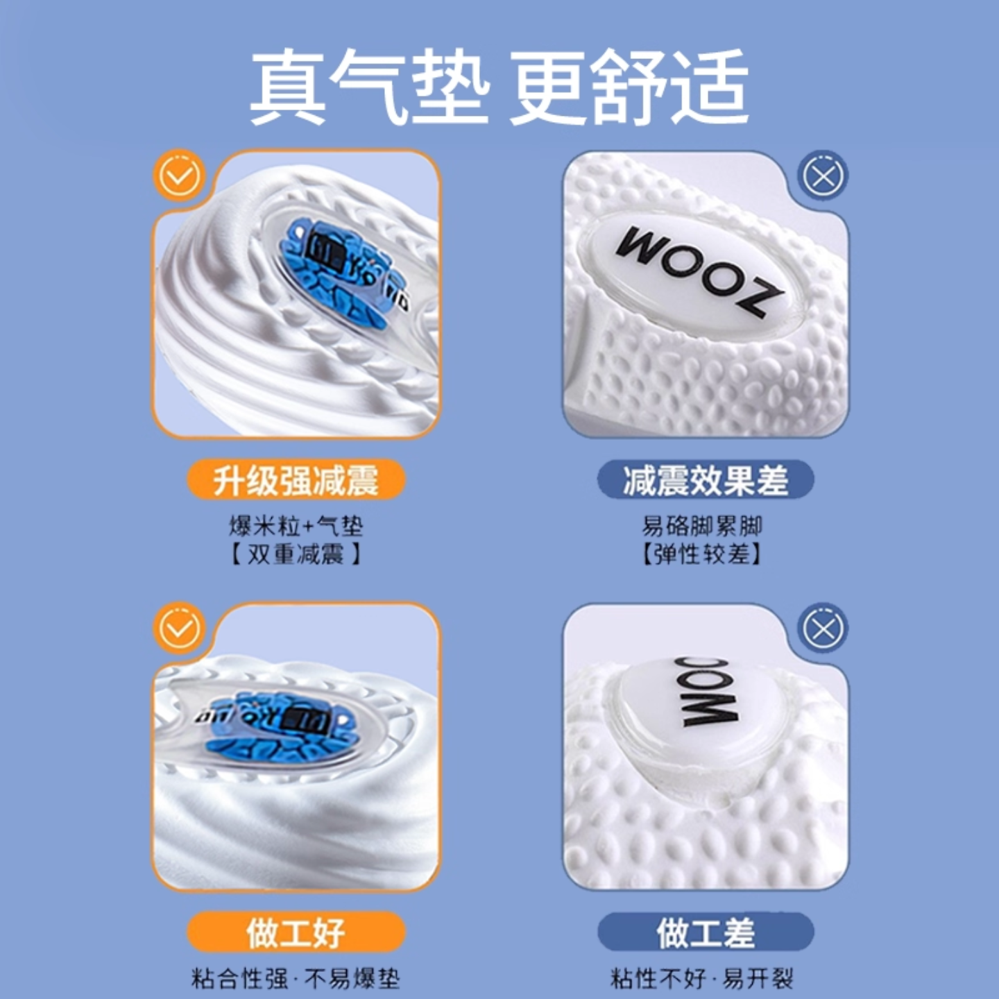 狗哥爆米花增高鞋 德训aj气垫减震透气内增高小个子防臭吸汗 垫男款