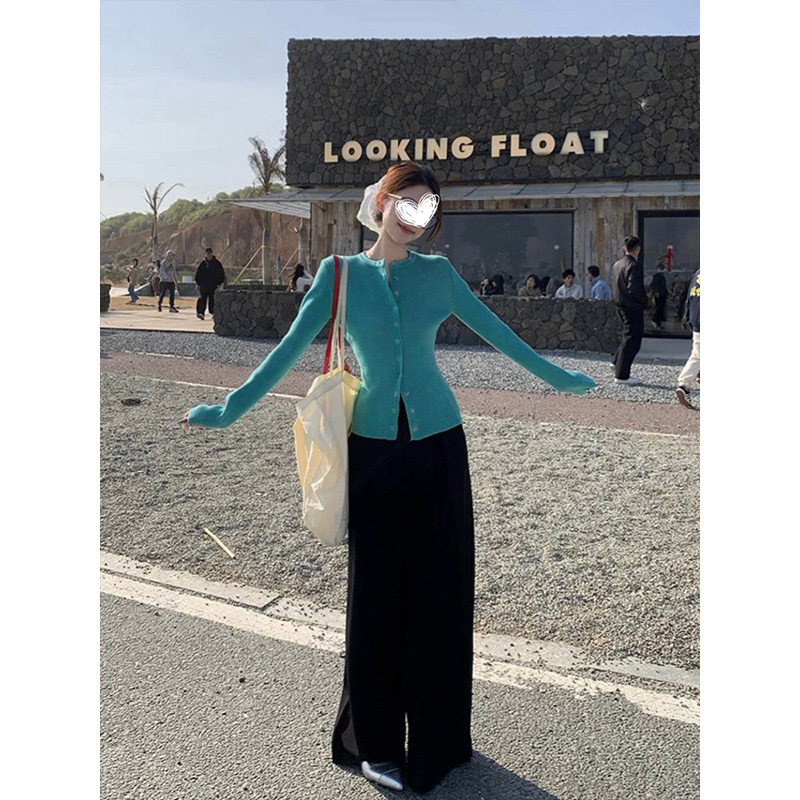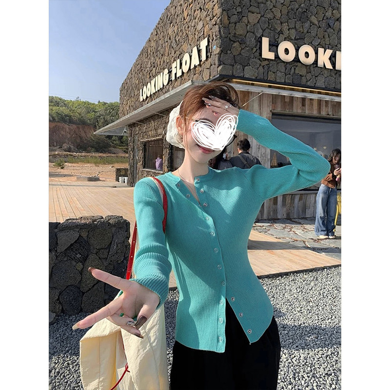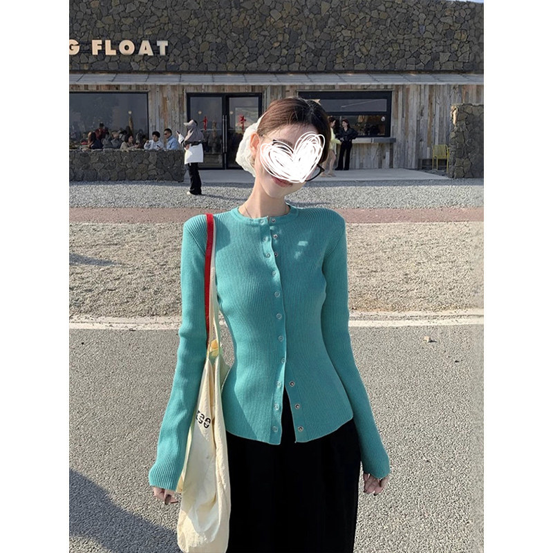 毛衣外套上衣 长袖 MosesQueen魔西女王薄荷绿色针织开衫 女春秋修身