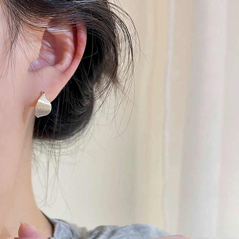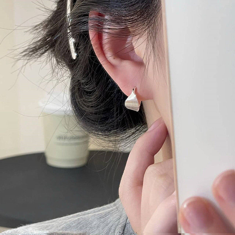 s925银针耳饰银色扭曲线条耳扣女轻奢小众高级感时尚 气质百搭耳扣