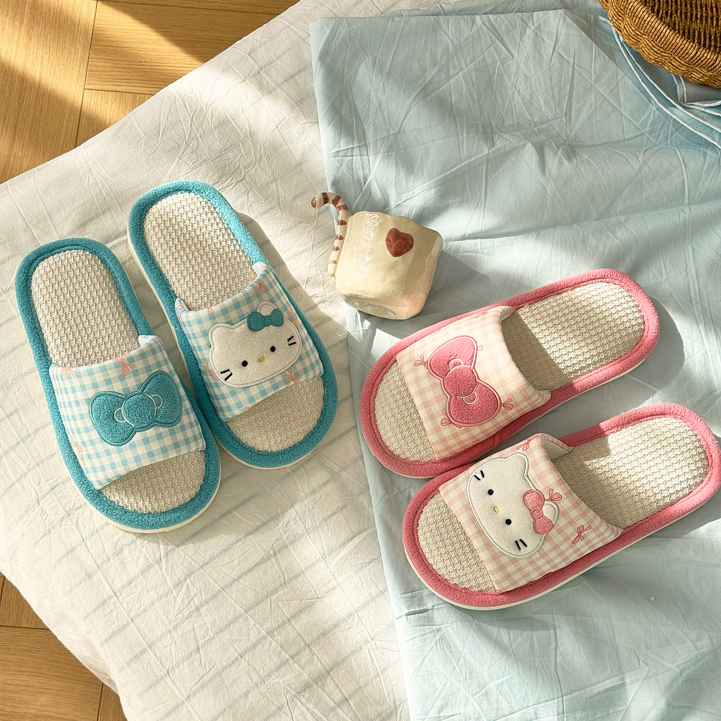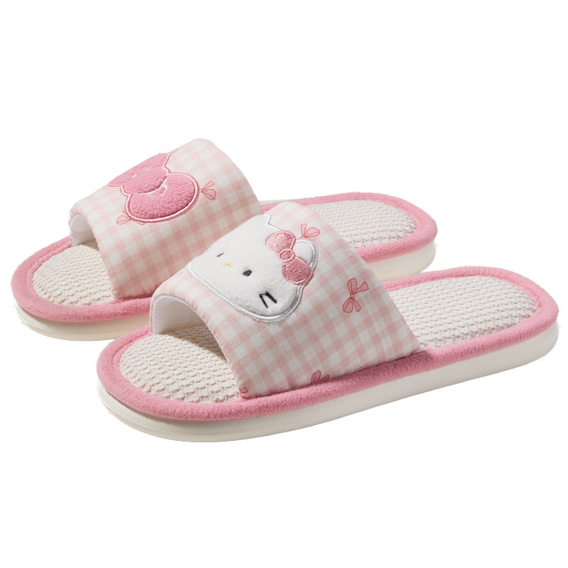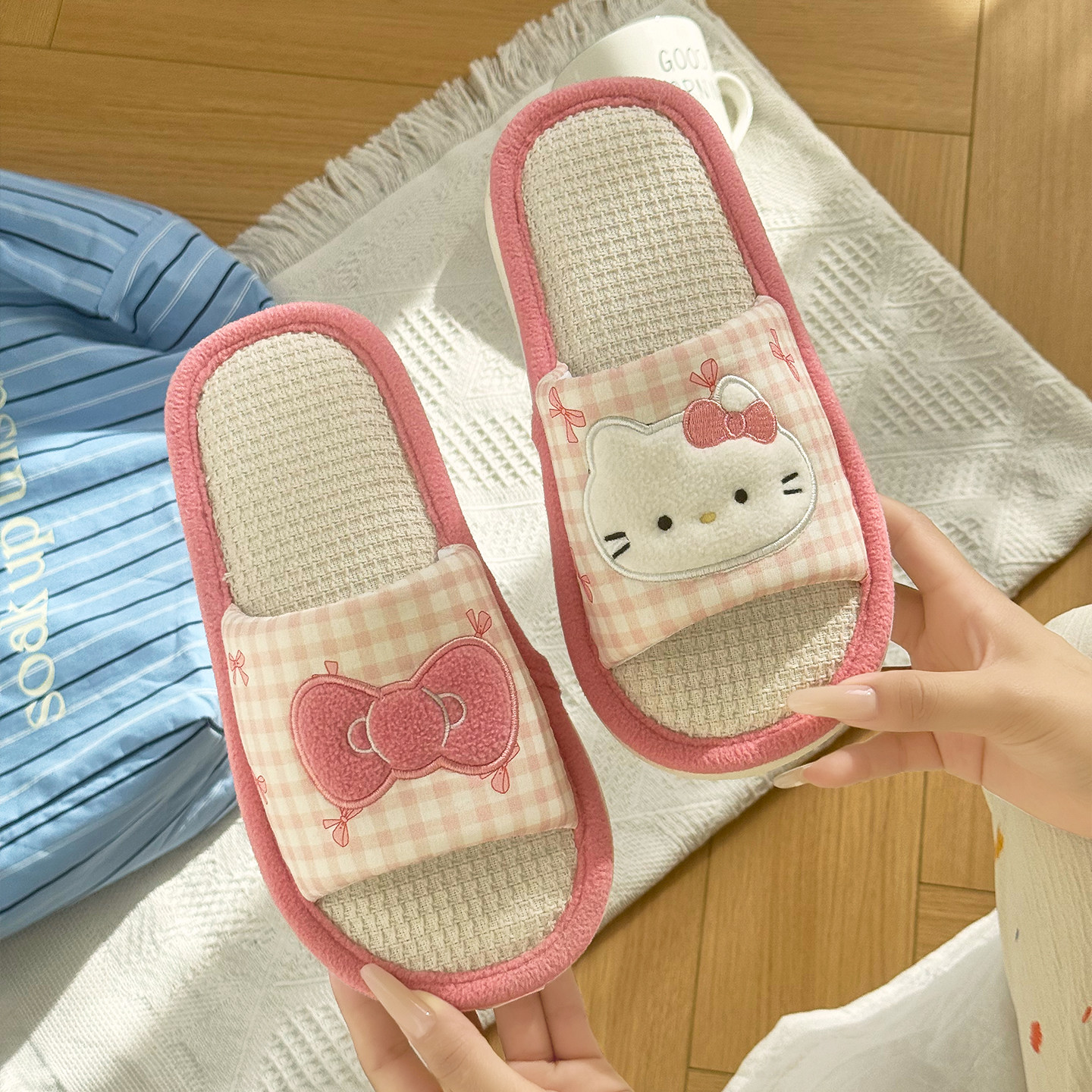 棉麻拖鞋 2025款 可爱HelloKitty居家室内防滑四季 女秋季 kt亚麻拖鞋