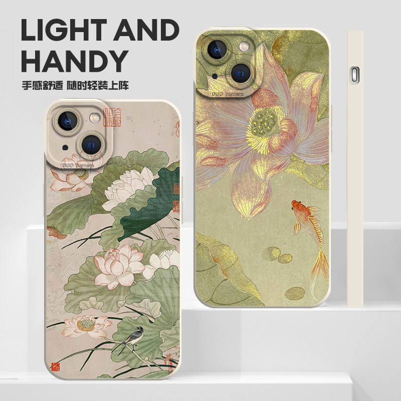 turbo4 莲花锦鲤适用小米13ultra手机壳14红米k80至尊版 15s国风k70k60k50k40s荷花12pro带挂绳11妈妈note