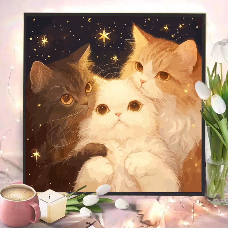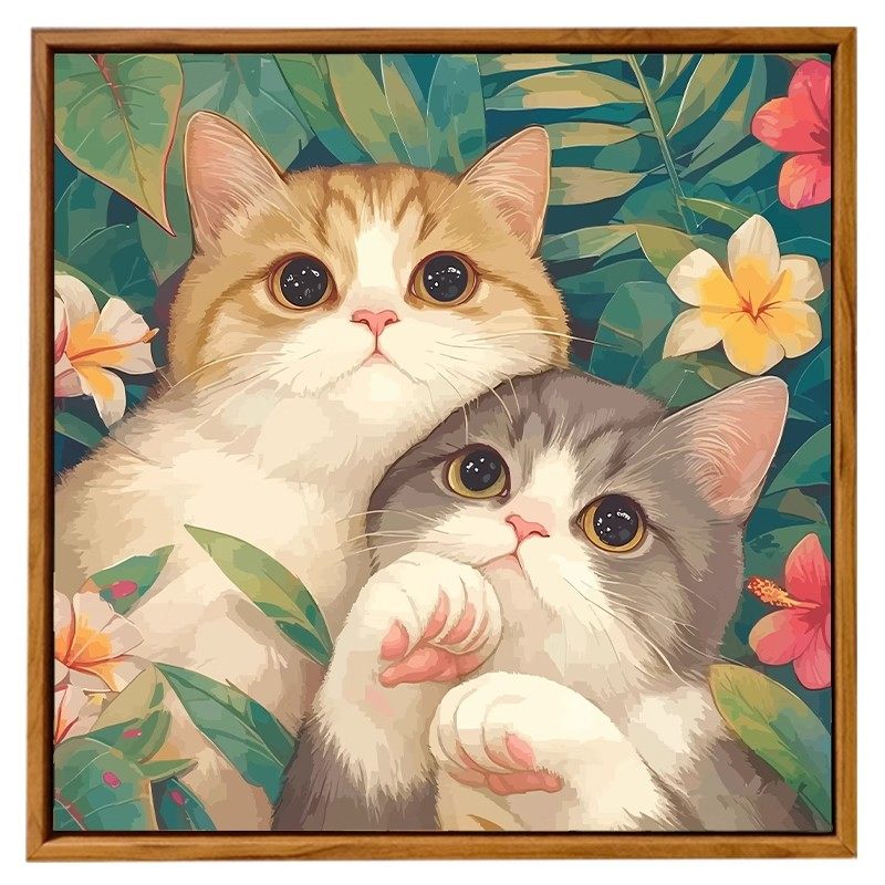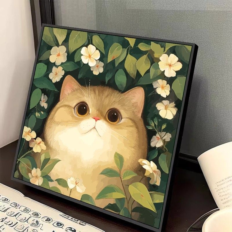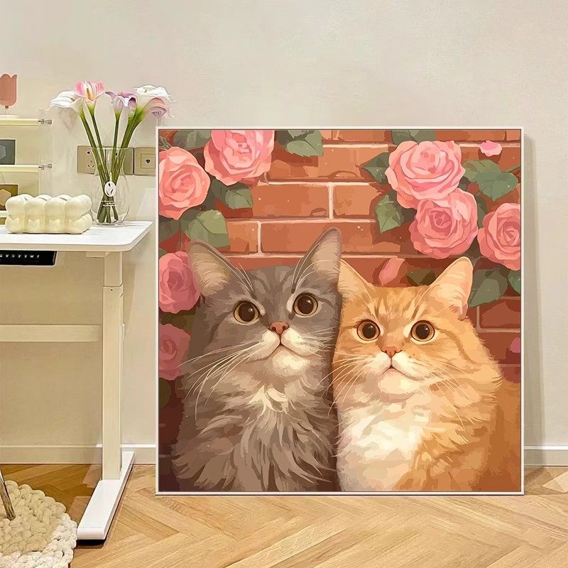 可爱小猫咪装 饰画仿油画成品方形可爱动物温馨治愈卧室客他摆挂画