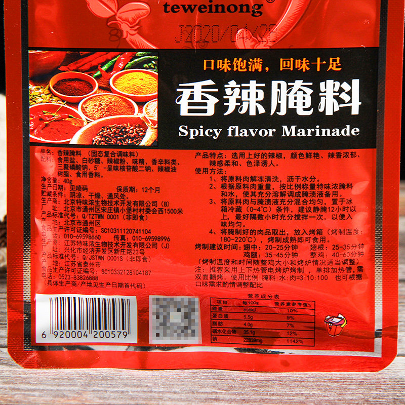 特味浓香辣腌料1kg新奥尔良烤翅腌料香辣烤翅鸡翅烧烤调料商用