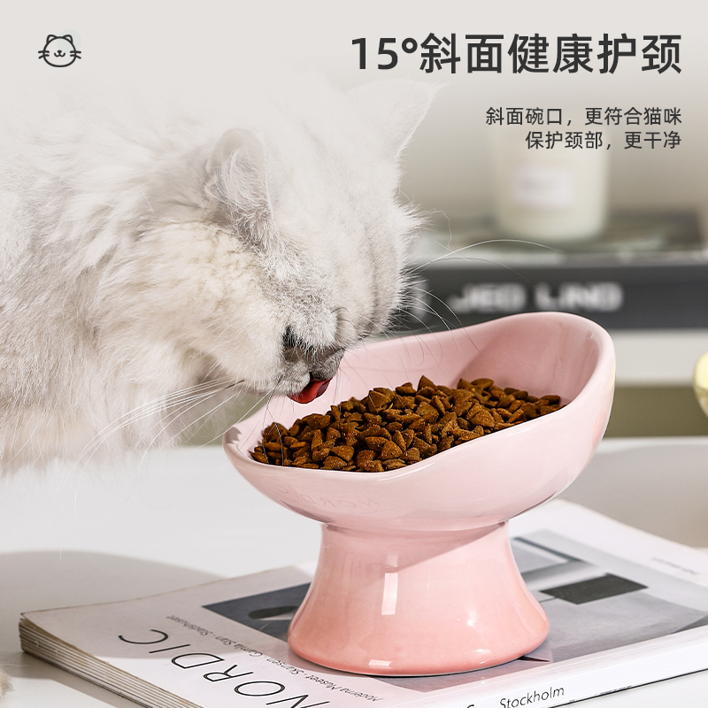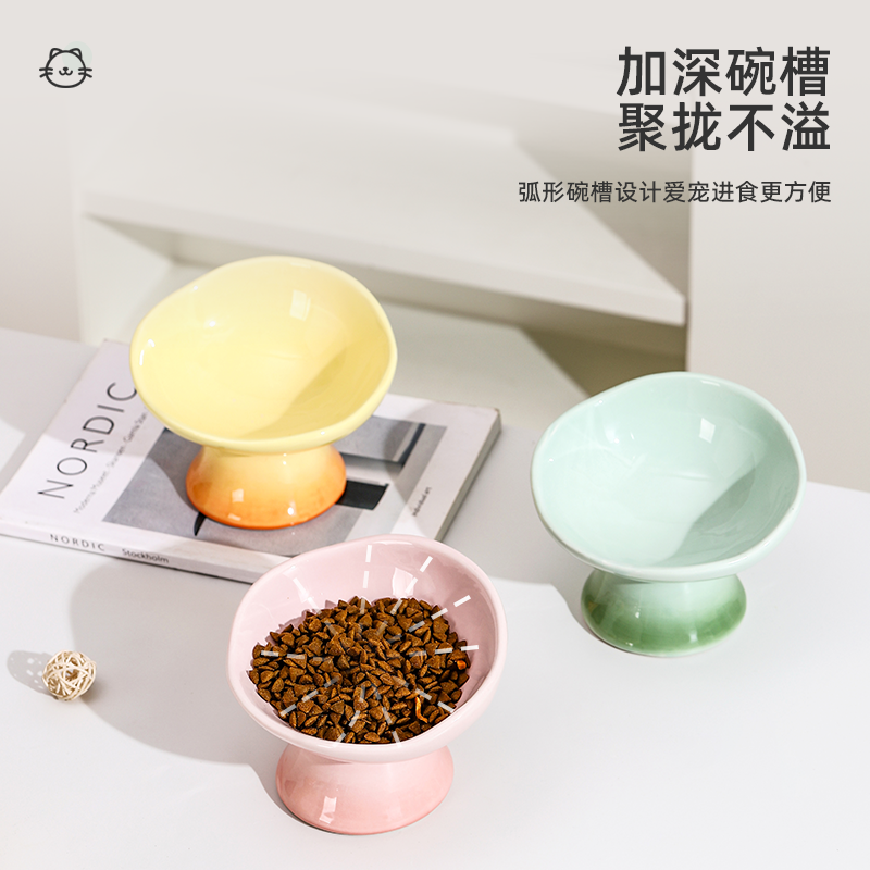 大口径猫碗陶瓷高脚猫食盆保护颈椎猫咪宠物碗狗碗饮水猫饭碗猫盆