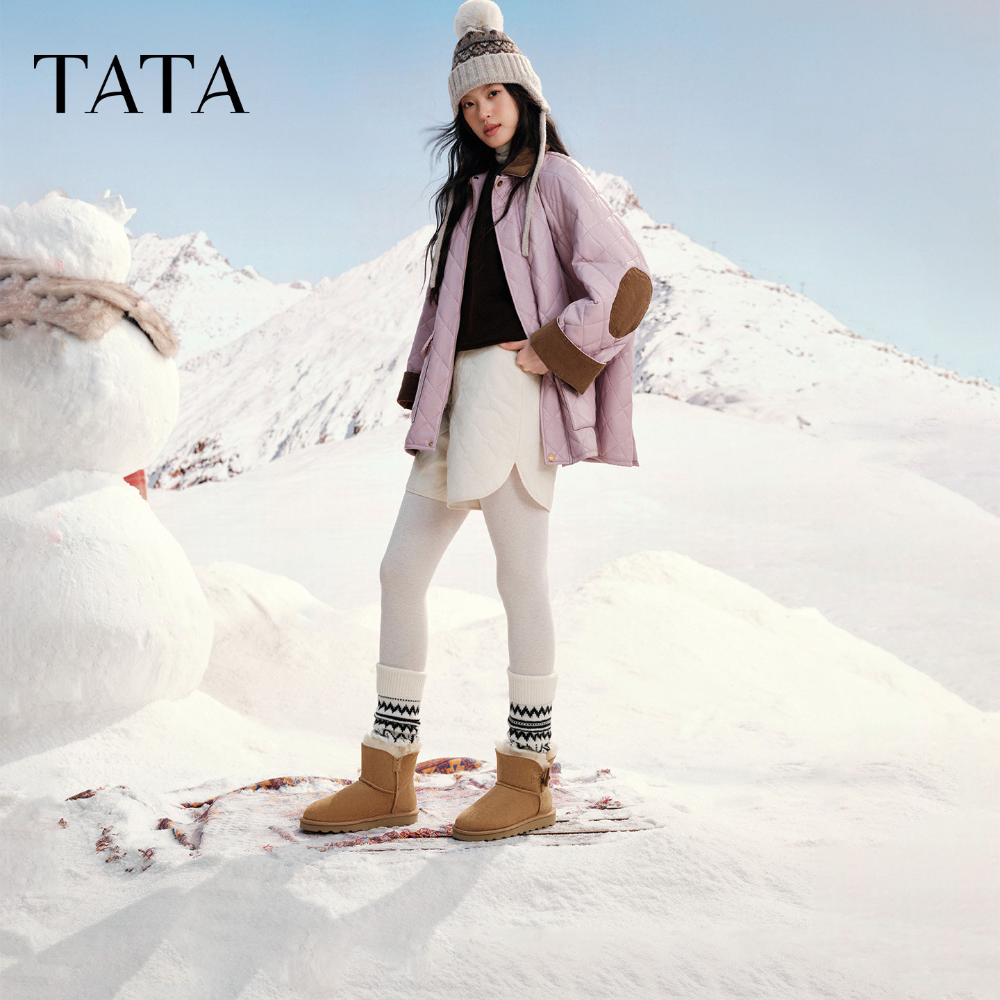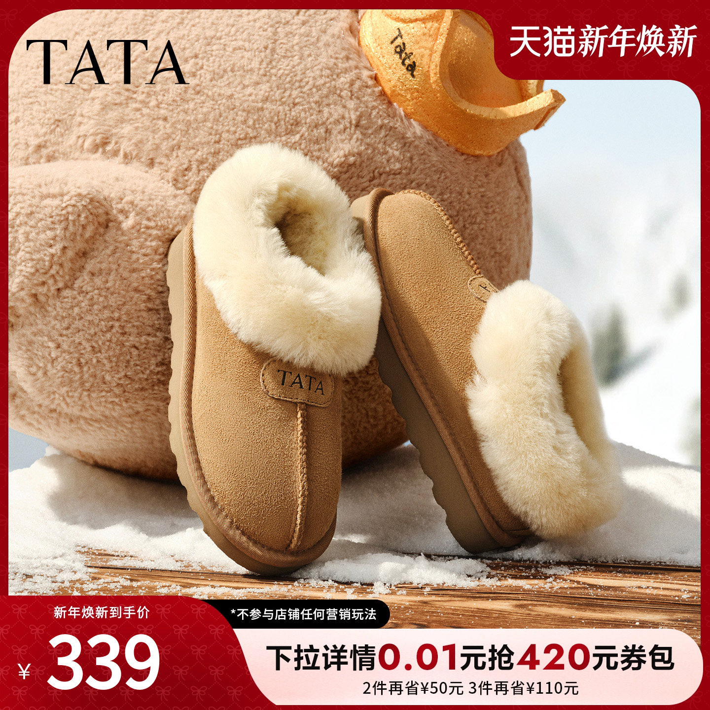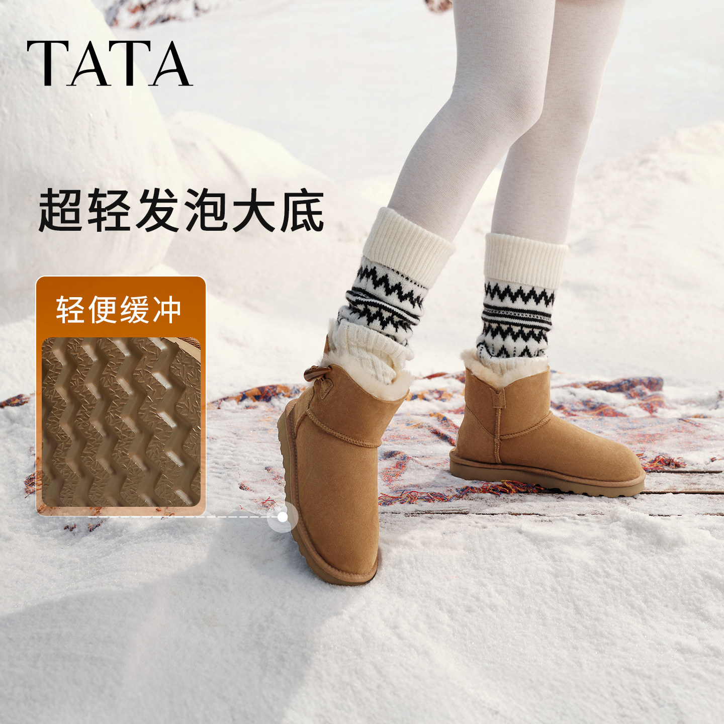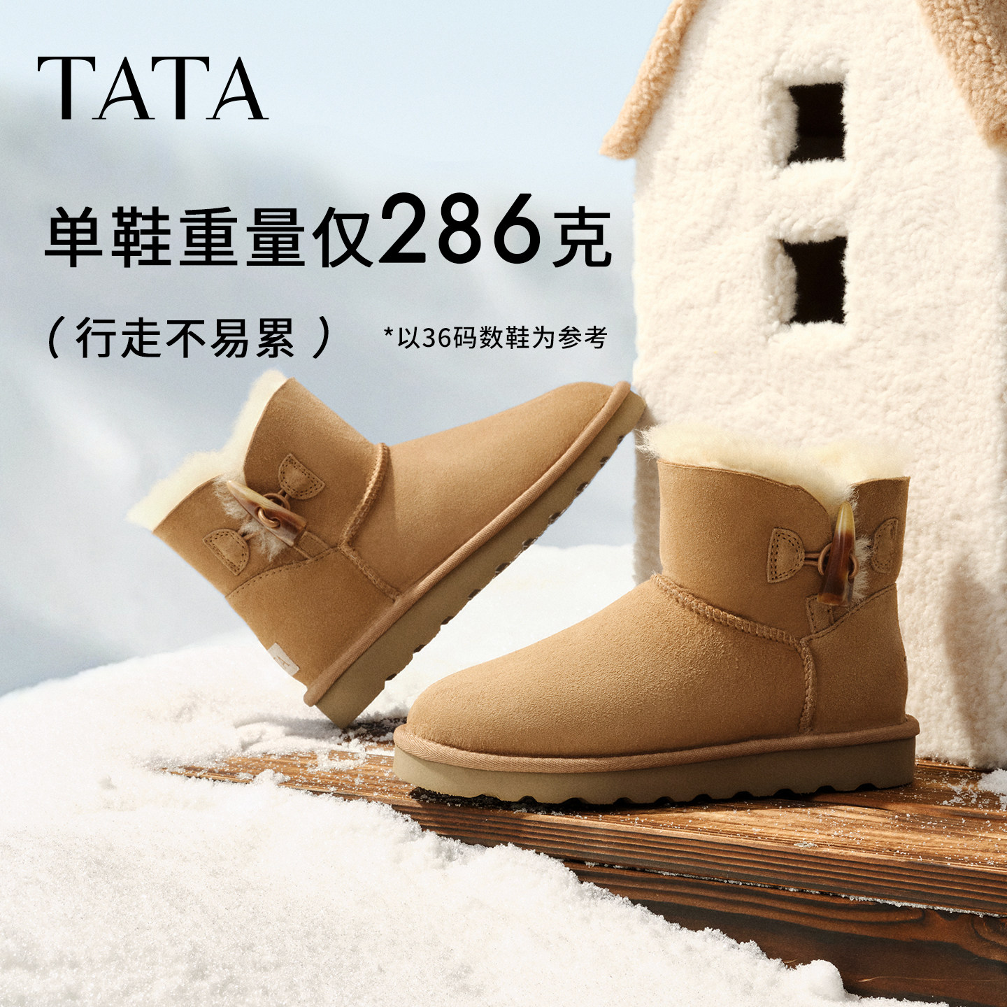 MXZ01DM5 棉鞋 TATA他她云感毛毛鞋 雪地靴皮毛一体保暖加绒短筒女鞋