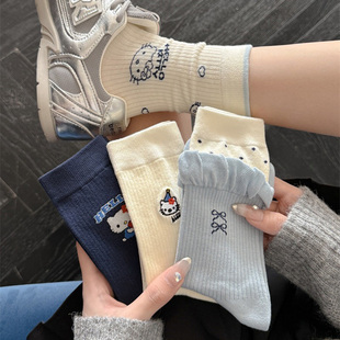 布标凯缇猫可爱潮流长袜春秋中筒 布标袜子女2025新款 起步韩袜