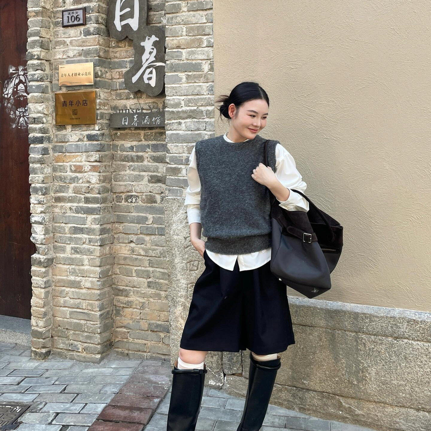 高腰百搭显瘦直筒阔腿五分裤 韩系通勤简约黑色西装 新款 女秋季 短裤