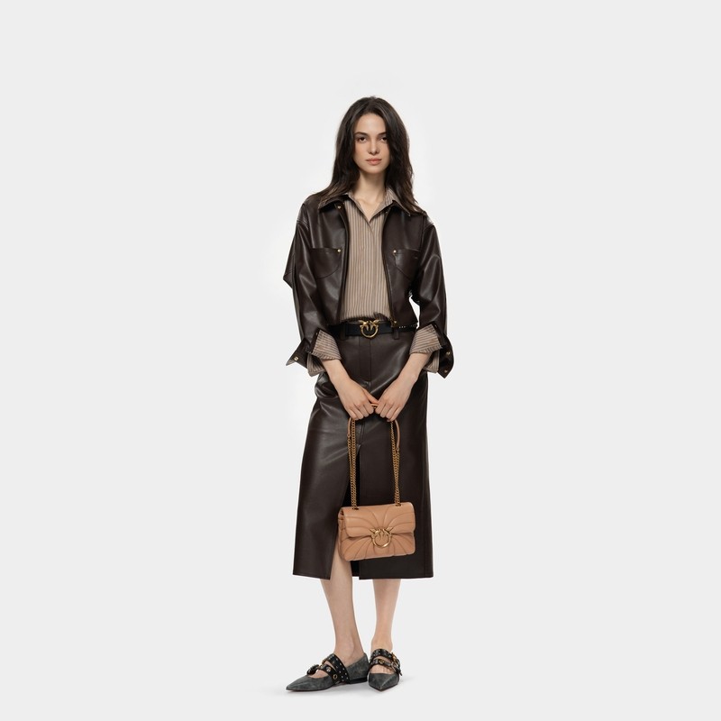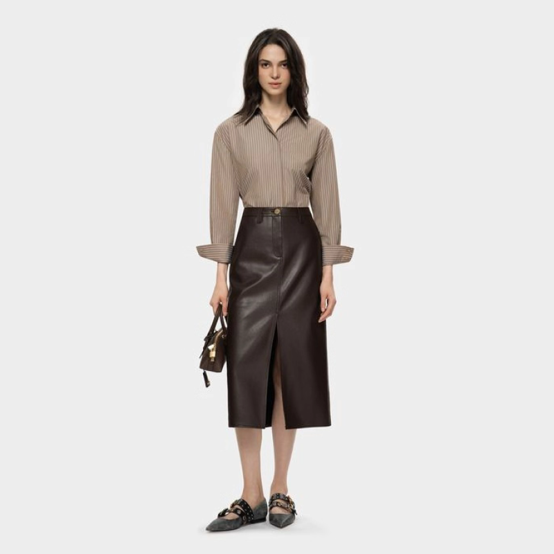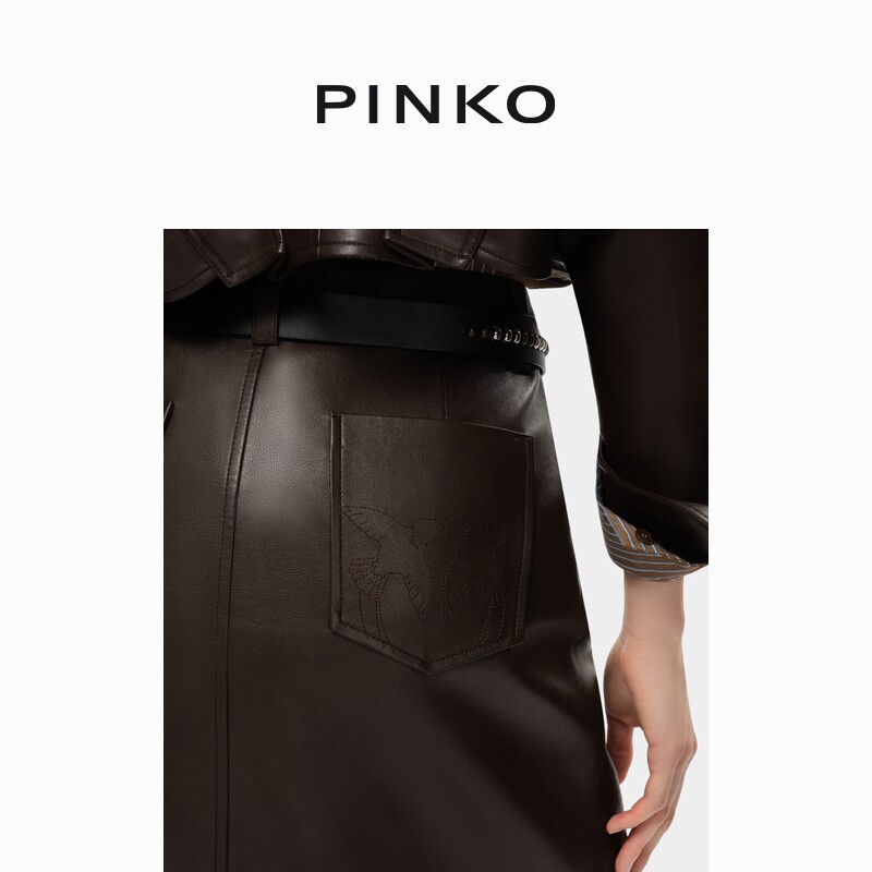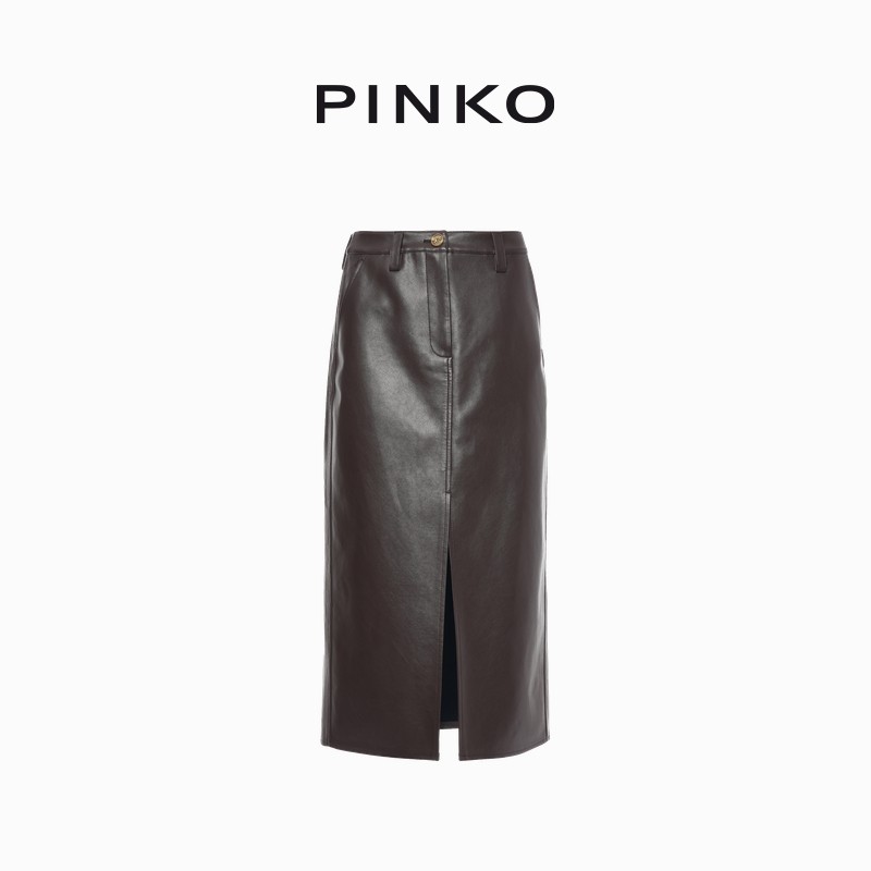 PINKO女士通勤皮裙直筒开衩休闲中长款 半身裙PAF25380105