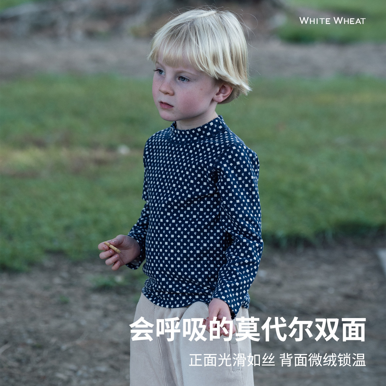 男女童打底衫 莫代尔长袖 宝宝满印T恤 新款 whitewheat儿童2025冬季