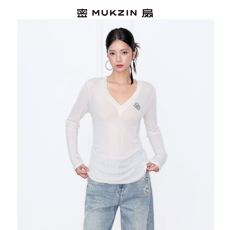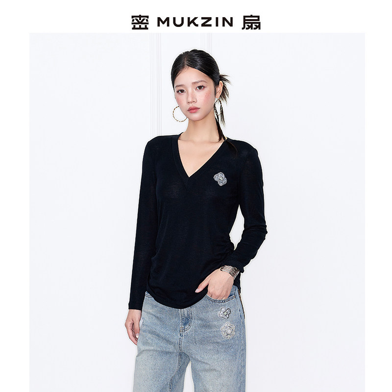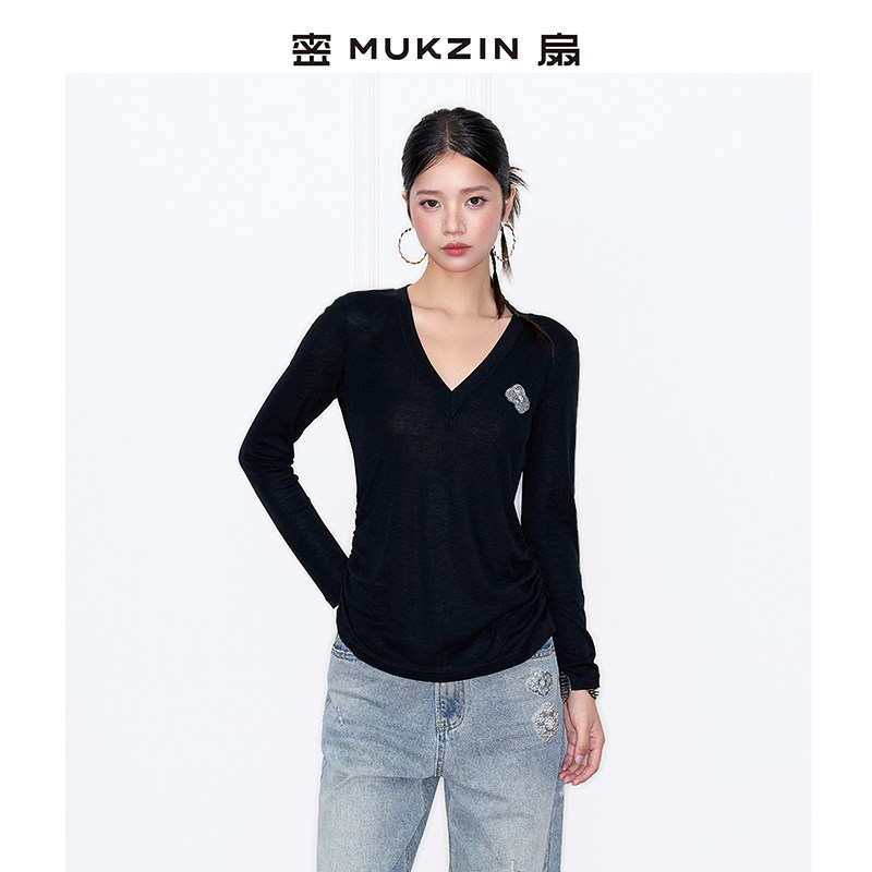 黄龄同款 V领修身 密扇秋季 女明星 超细羊毛针织打底衫 新款