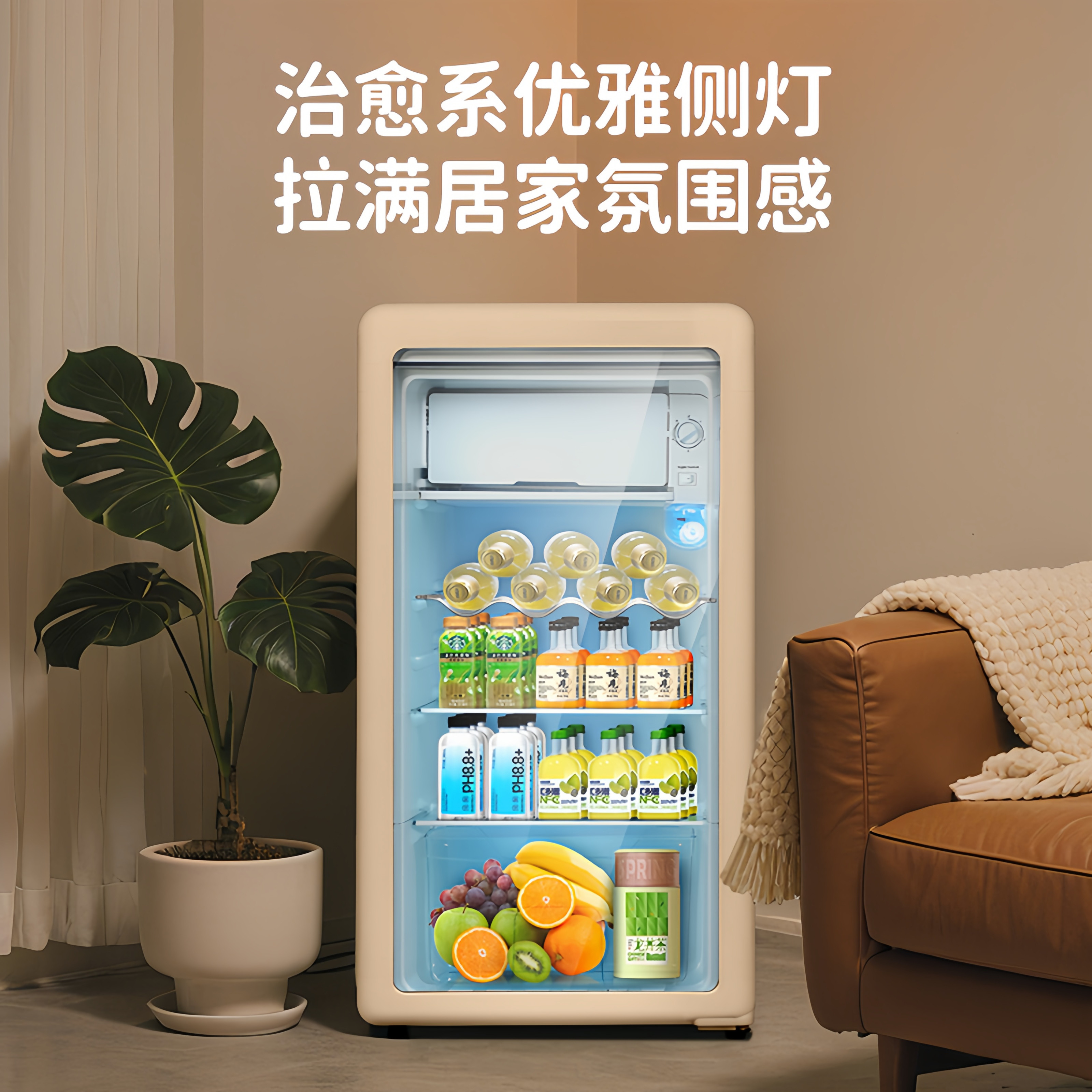 MESG复古冰吧家用小型冷藏保鲜柜透明冰箱办公室租房静音节能省电