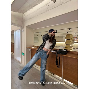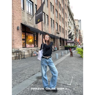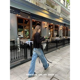 女宽松垂感拖地裤 KRO高腰直筒阔腿牛仔裤 子 蜜蜂欢乐社