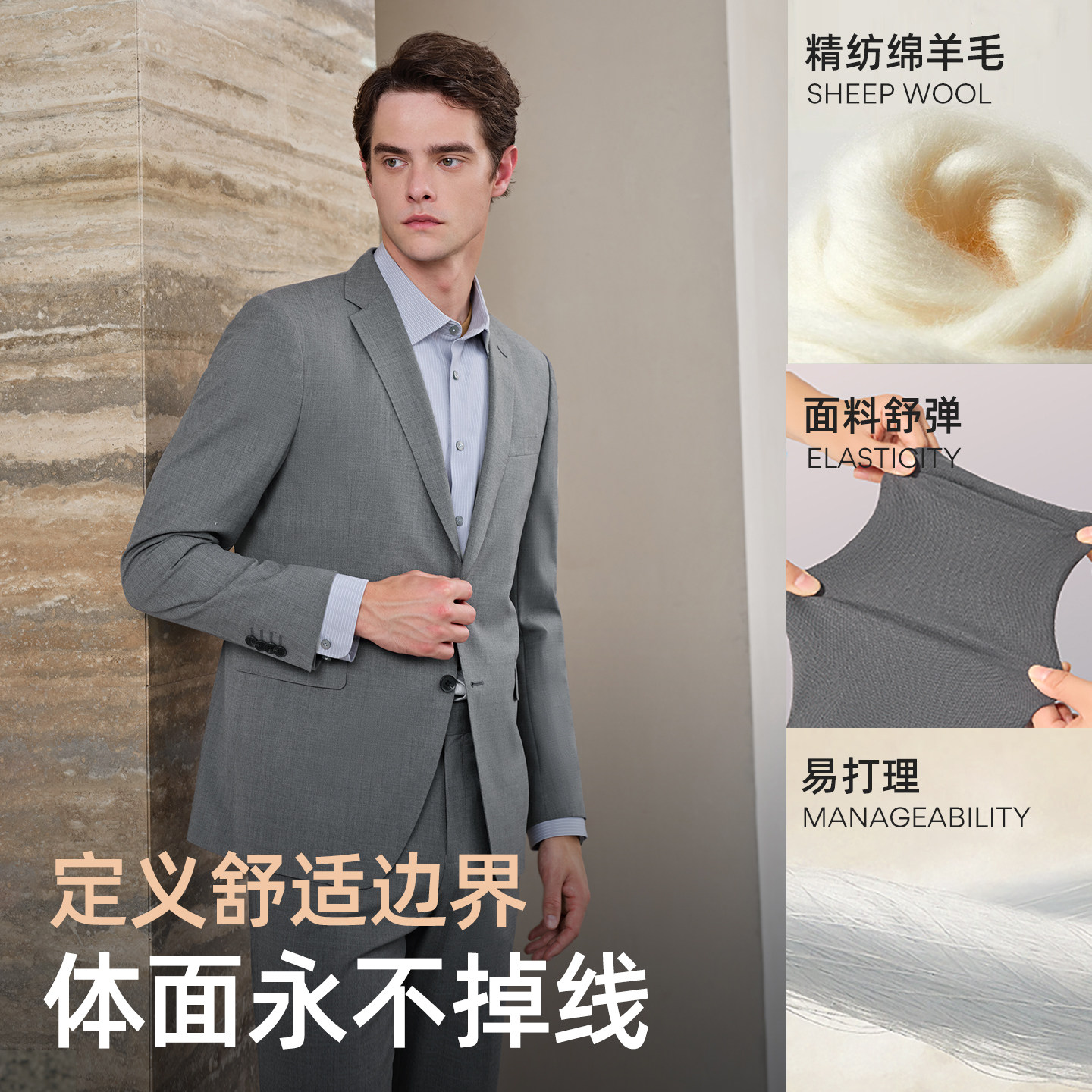 商务西服婚庆休闲可机洗羊毛西装 新款 外套男 秋季 雅戈尔男士