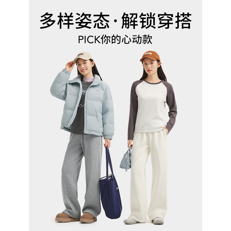加绒街舞穿搭褶皱宽松休闲长裤 女秋冬季 子 灰色运动卫裤 自然涩美式