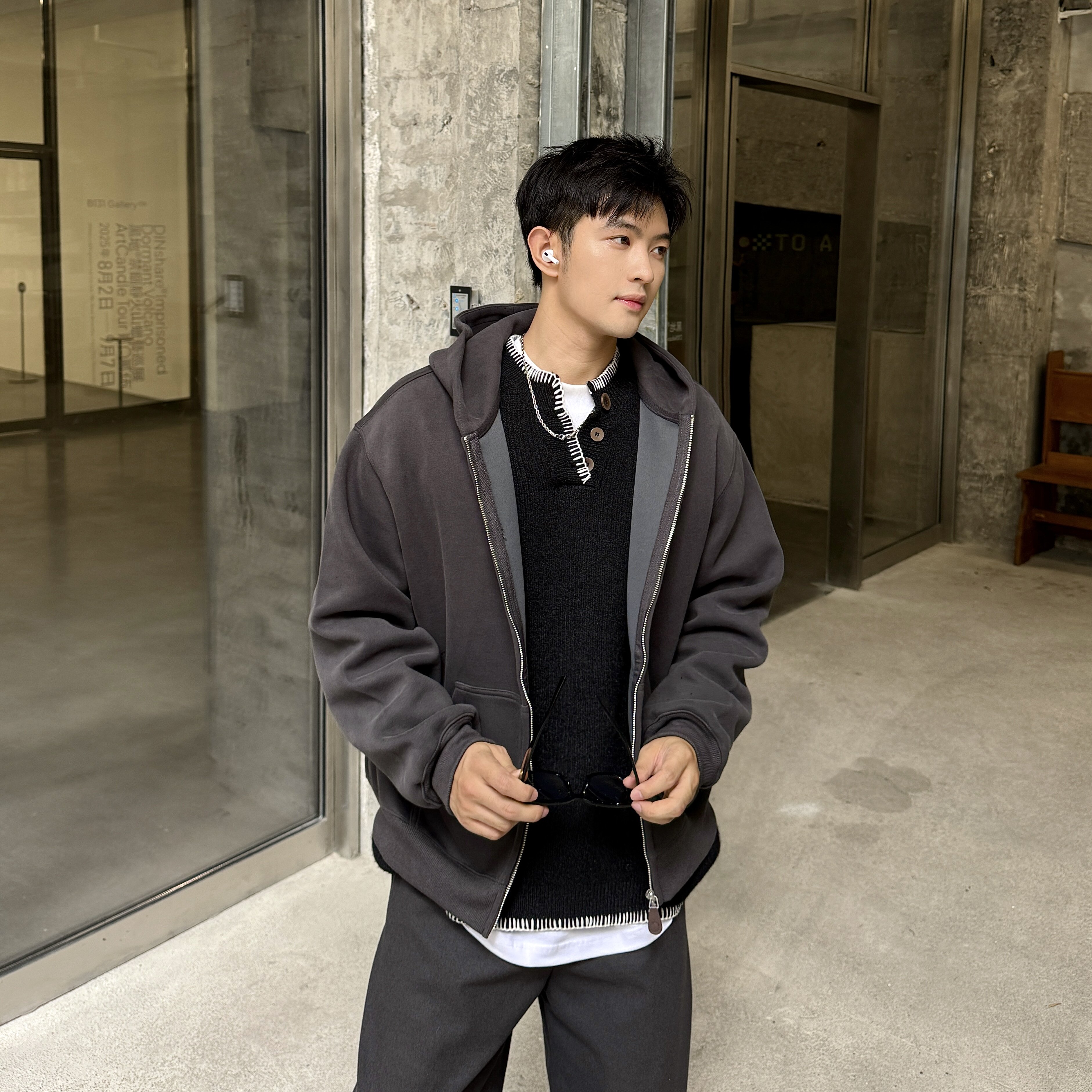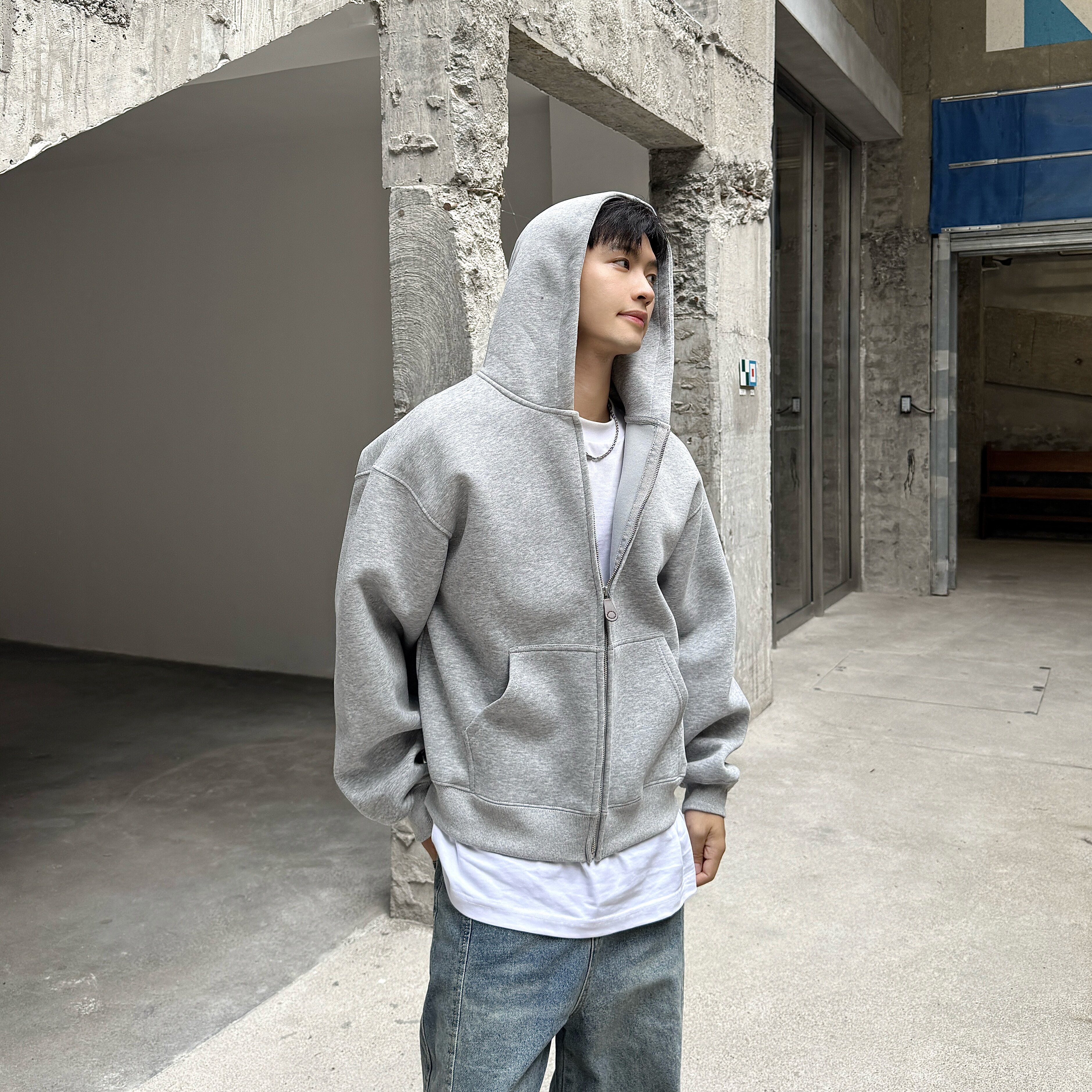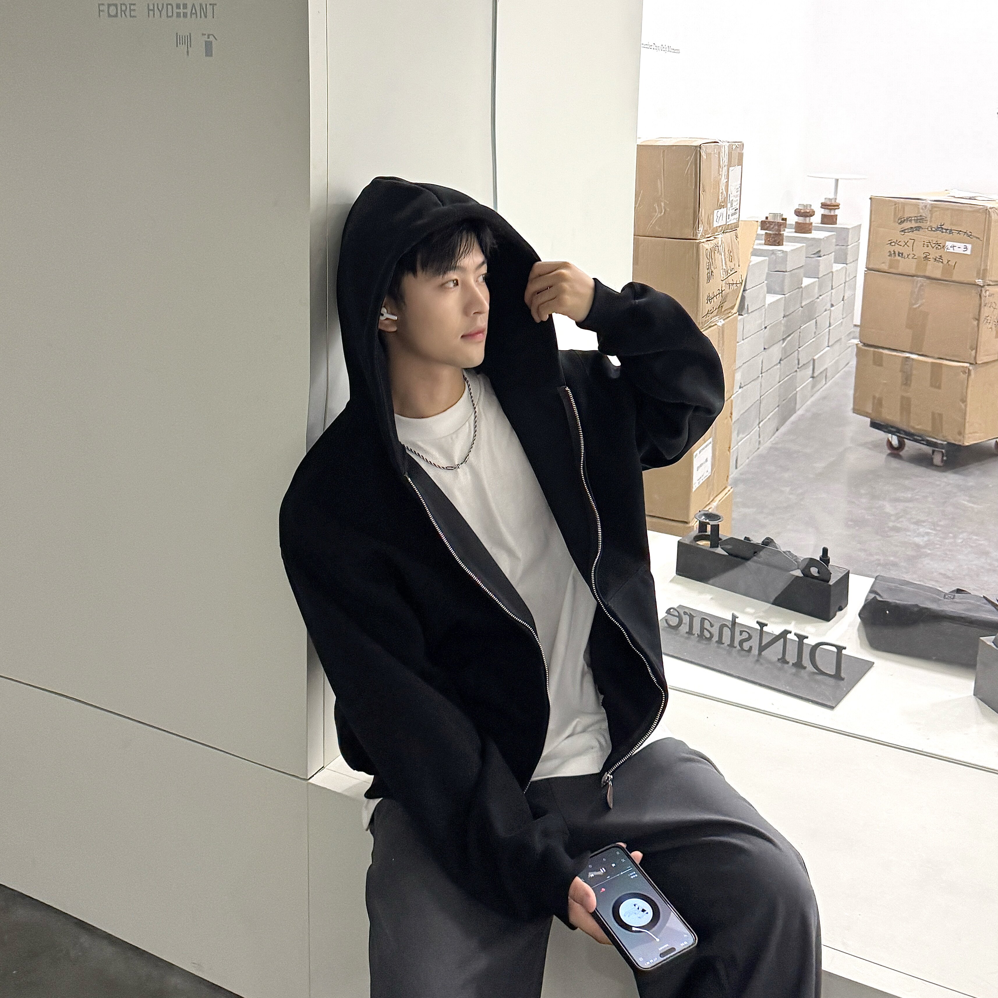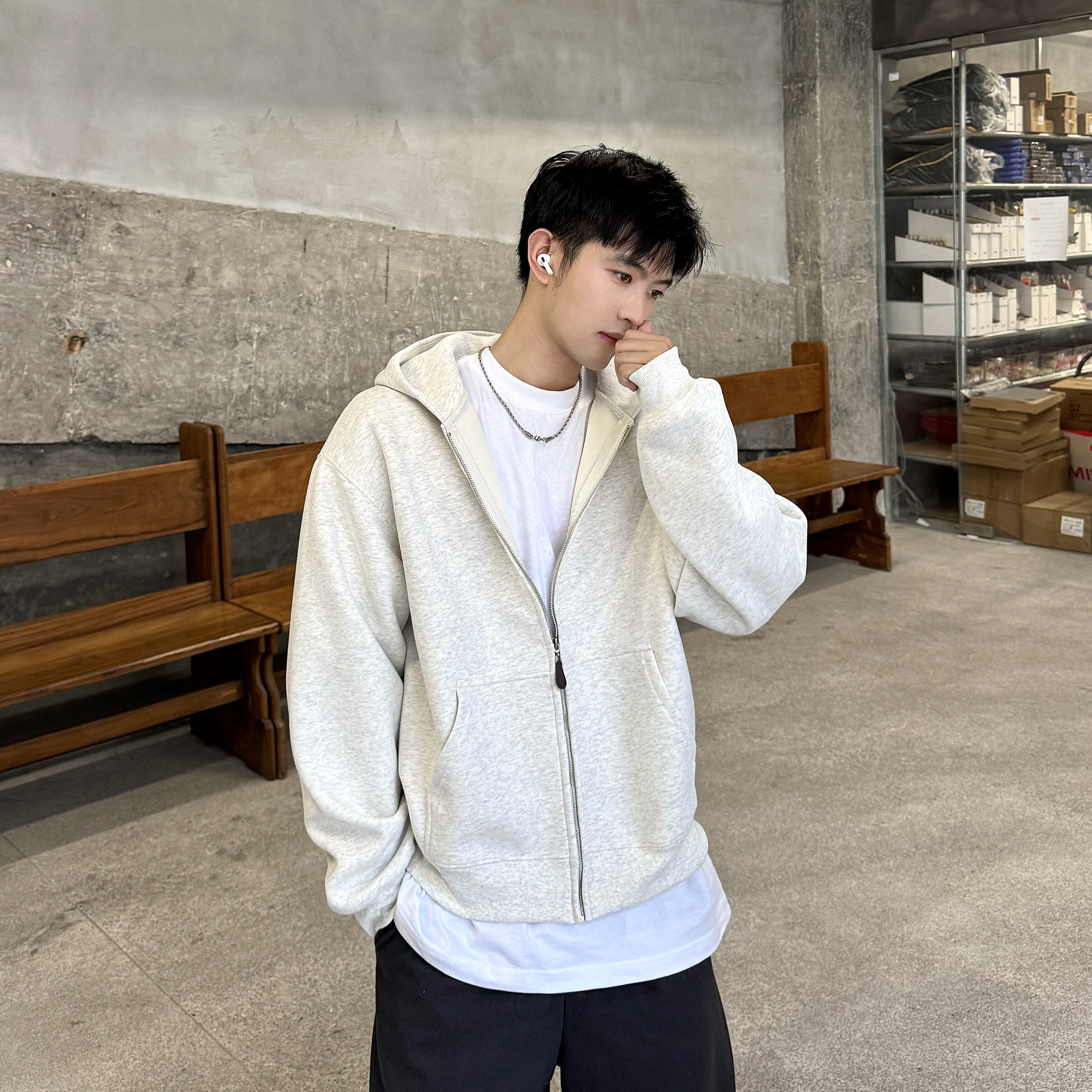 飞型记420g重磅美式 上衣 复古卫衣外套男秋冬连帽拉链宽松休闲开衫