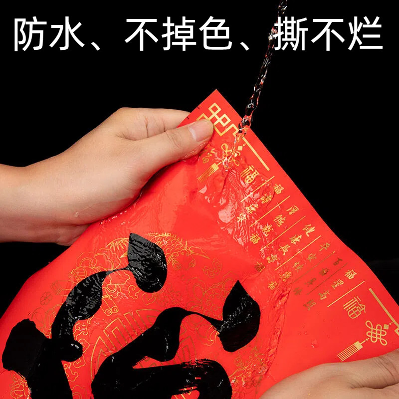 定制手写福字斗方纯红万年红黑字金色描金边福新年进宅门贴福对联