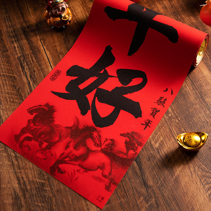 春节植绒洒金对联春联2026马年新款 过年家用高档植绒烫金自粘大门