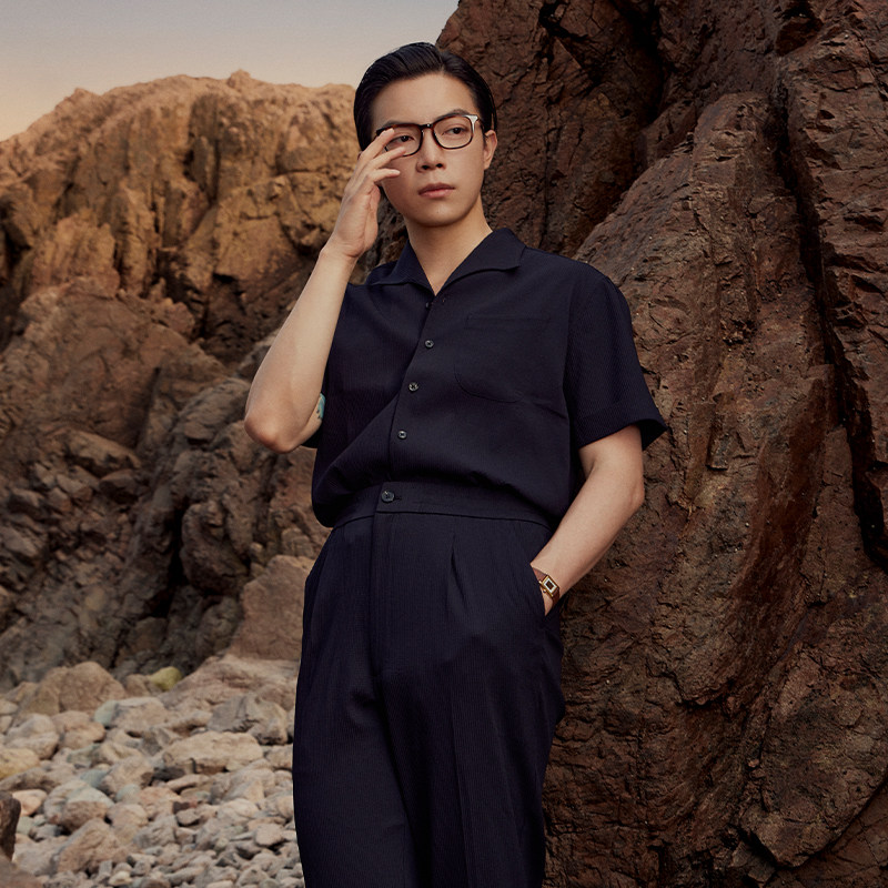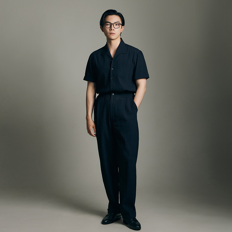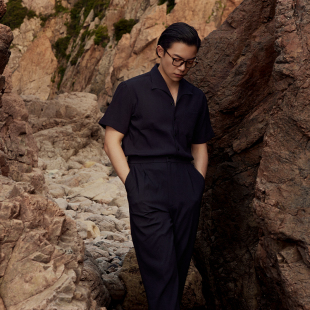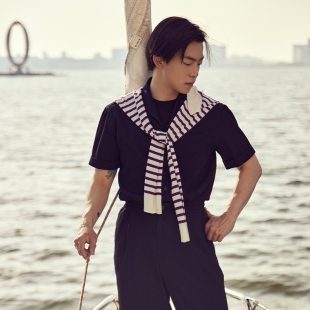 衬衣休闲裤 男短袖 平圆方中抗皱透气翻领衬衫 套装 海鸥领索罗娜