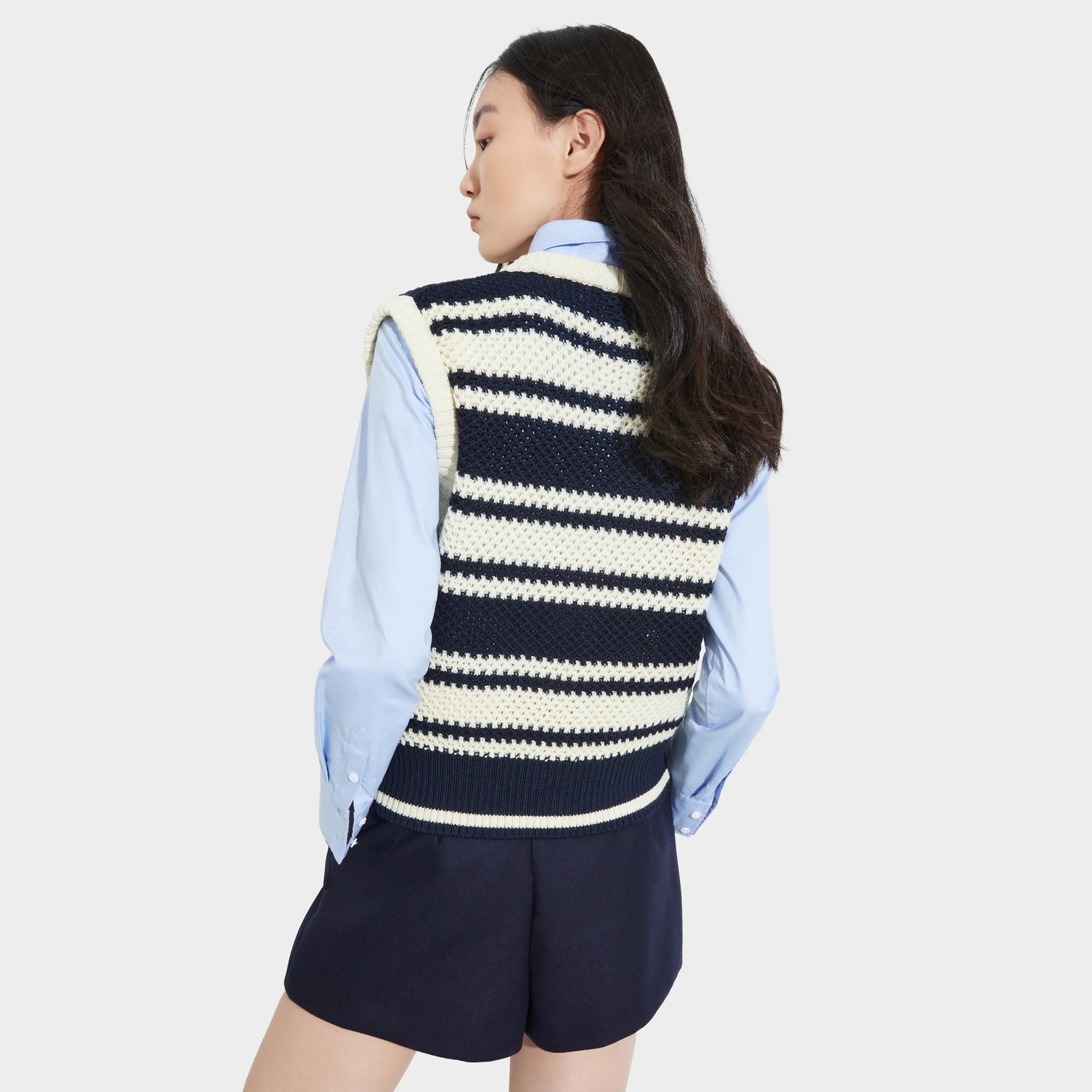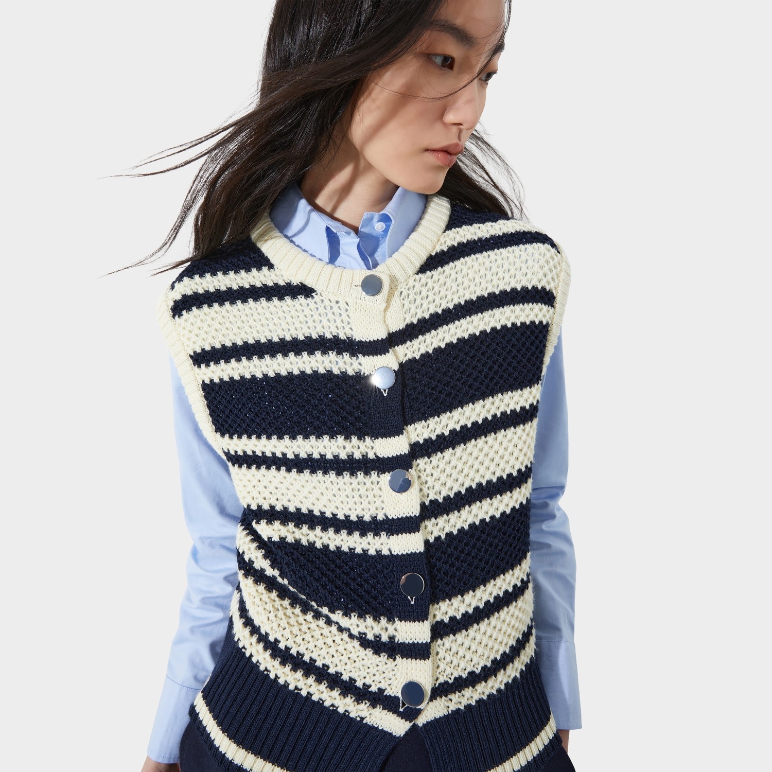 条纹针织毛衣背心6356025402 MAX&Co.25秋冬新品 新年穿搭