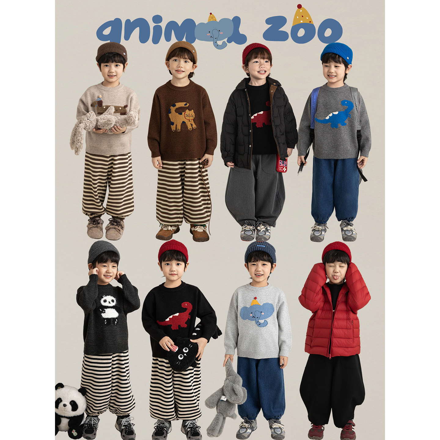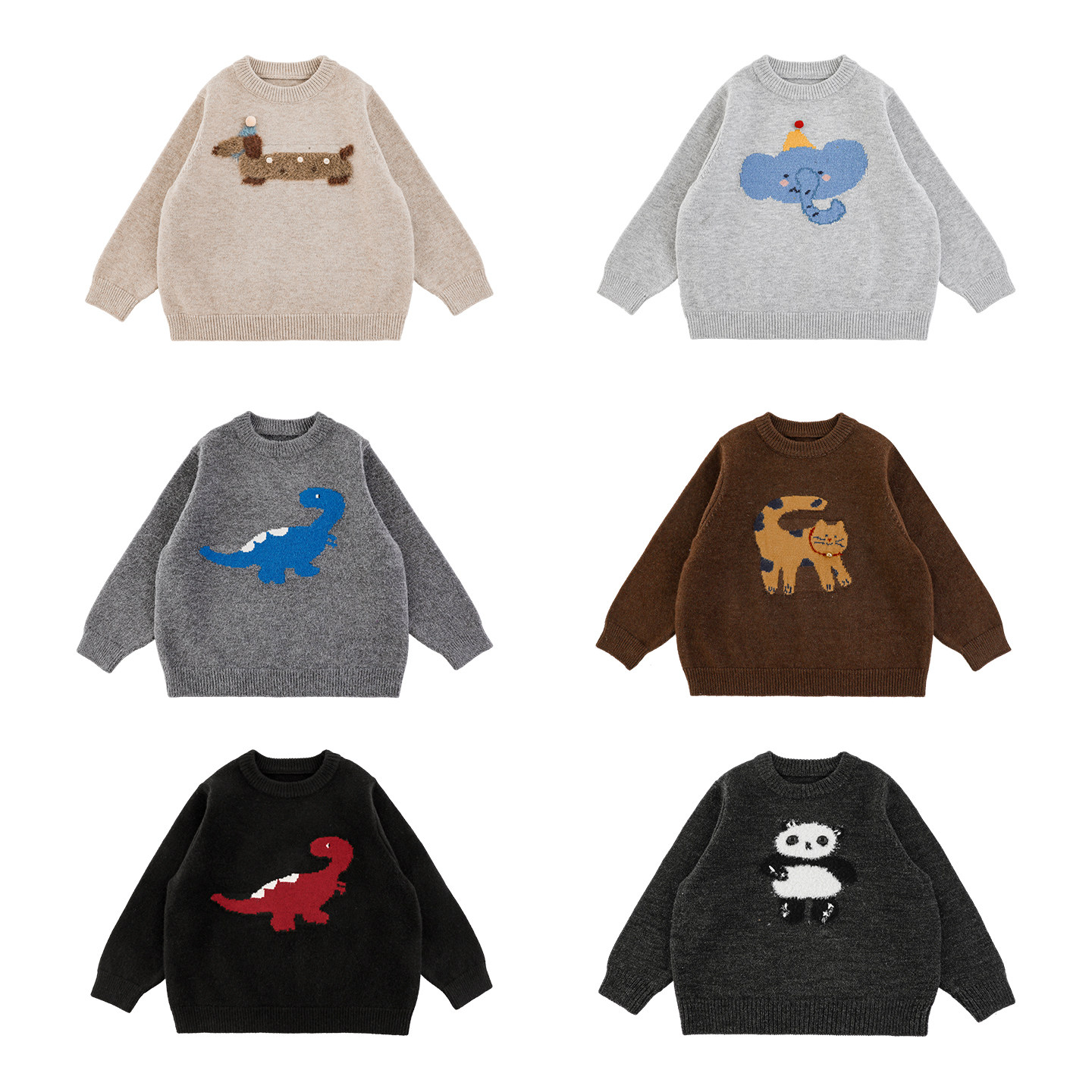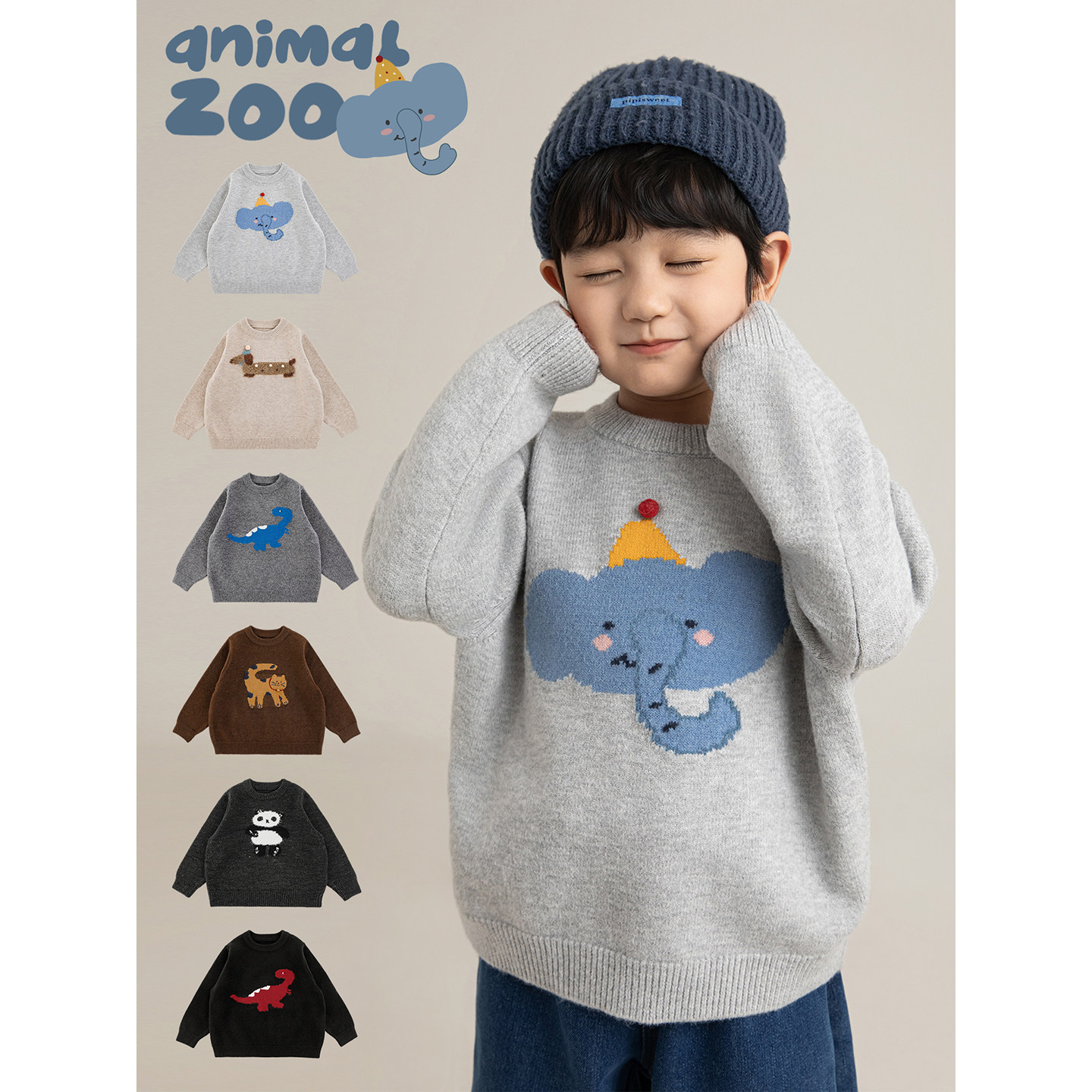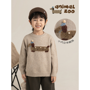 圆领卡通动物毛衣宽松厚实保暖针织衫 长袖 潮 新款 幼悠男童2025冬季