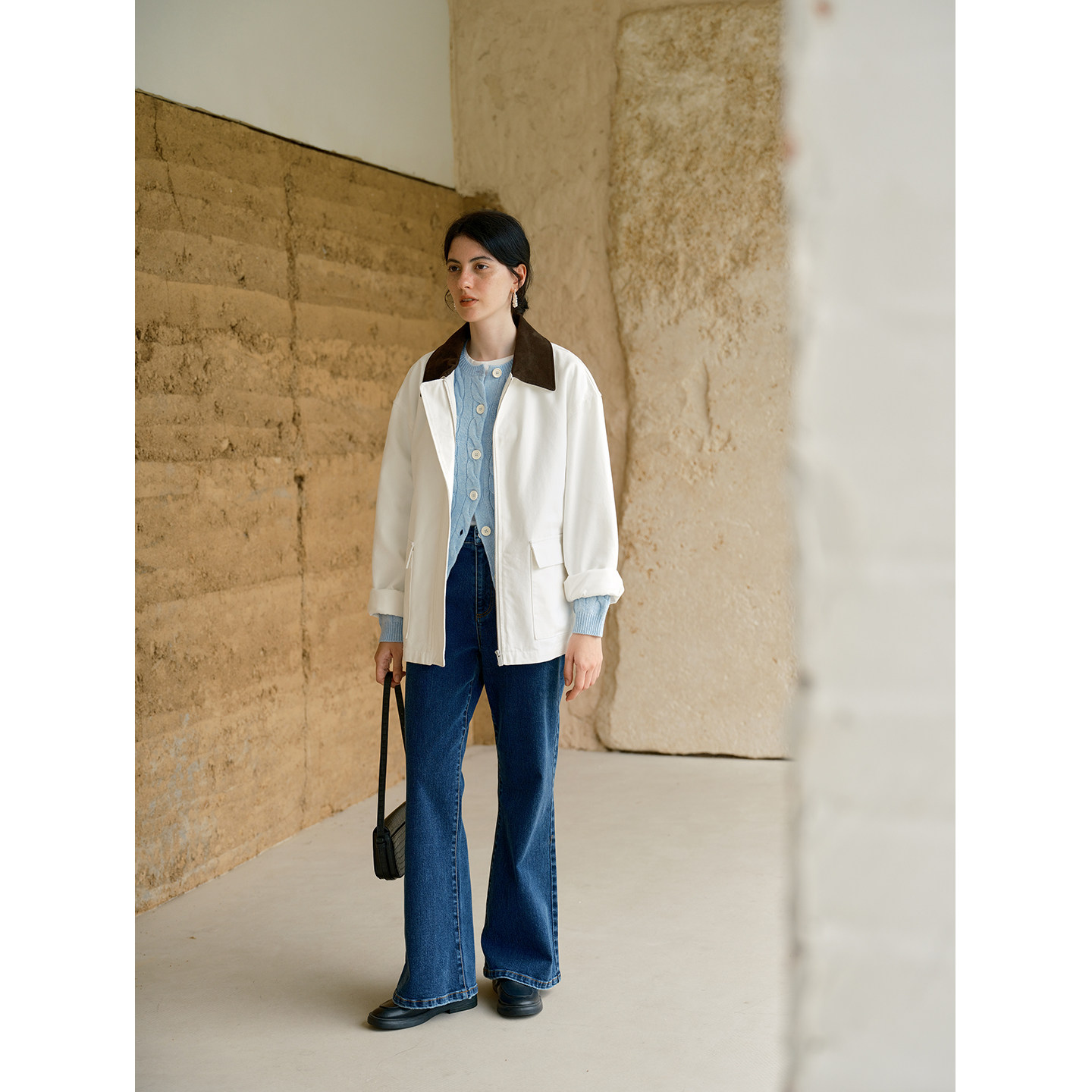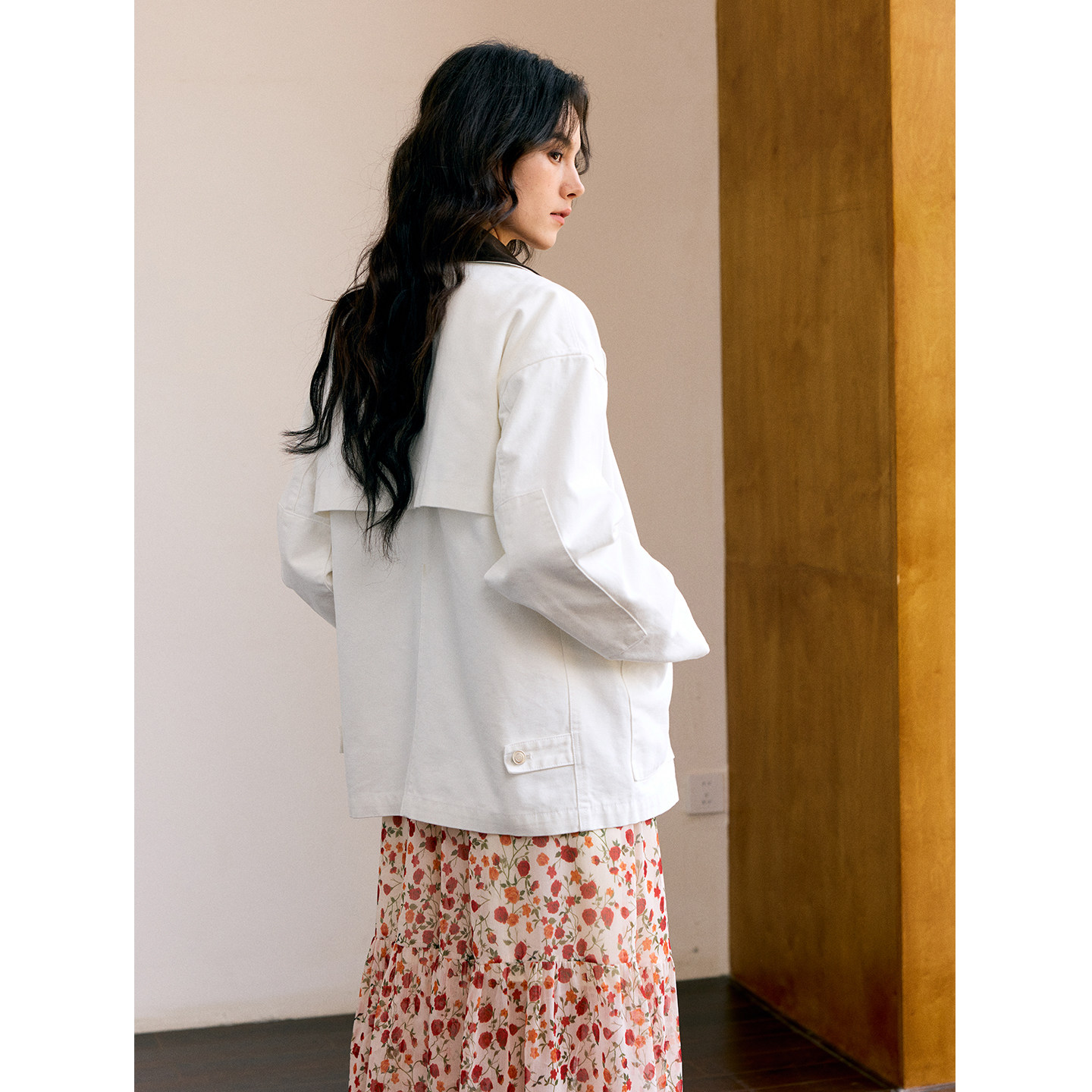 HeyDress复古撞色翻领外套女春季 宽松巴恩风休闲气质百搭风衣上衣