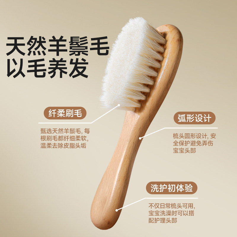 婴儿梳子胎毛去头垢刷婴幼儿专用羊毛梳新生儿宝宝洗头软刷子I9