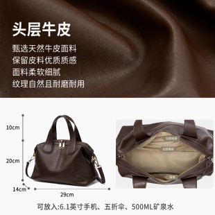 真皮手提包包女士2026新款 植鞣皮大容量波士顿包小众高级感斜挎包