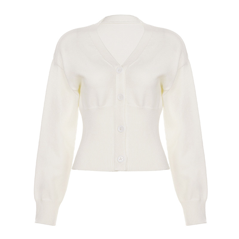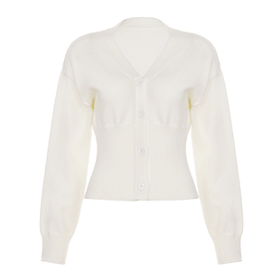 毛衣女百搭排扣针织开衫 收腰长袖 秋 简约基础白色V领修身 WEEKEEP