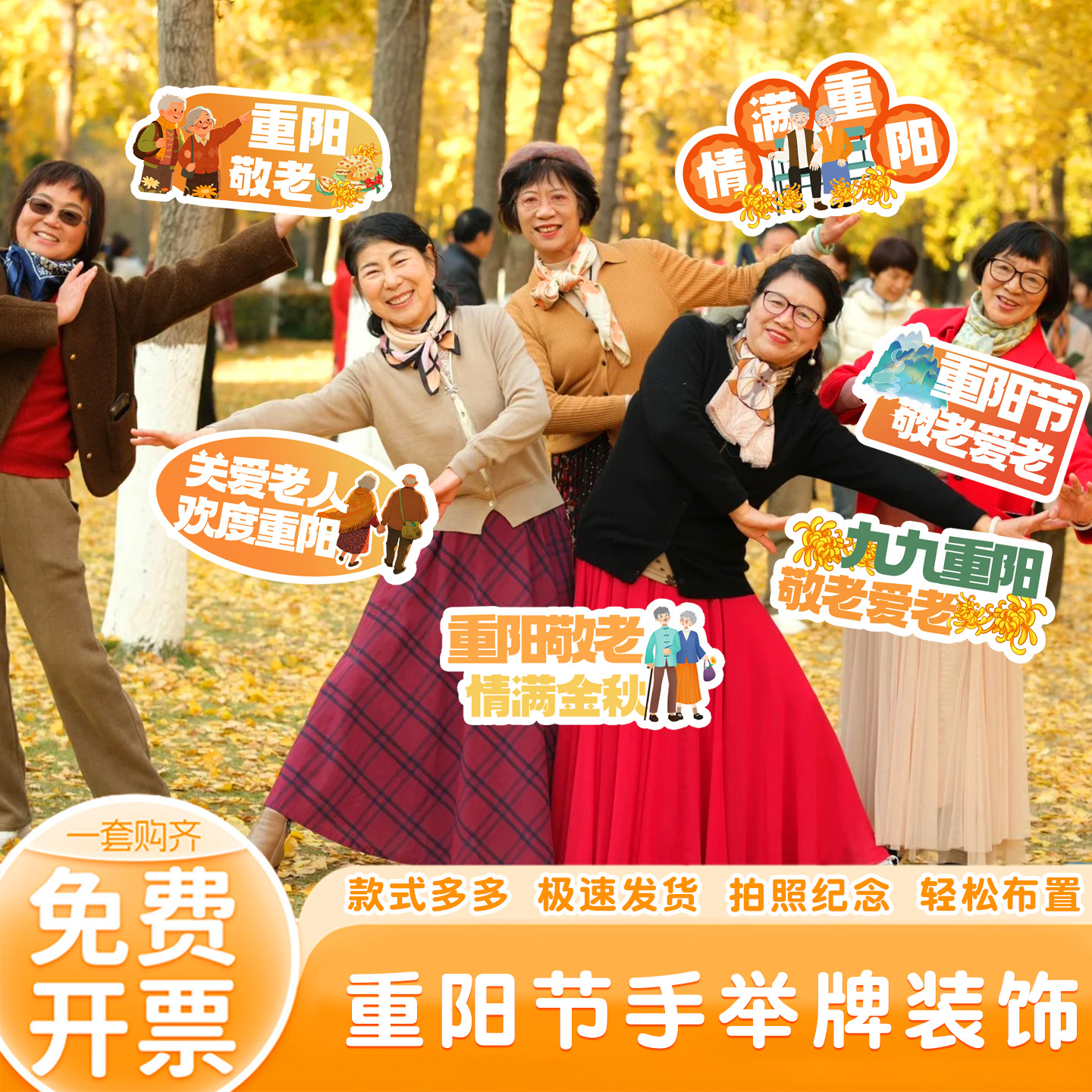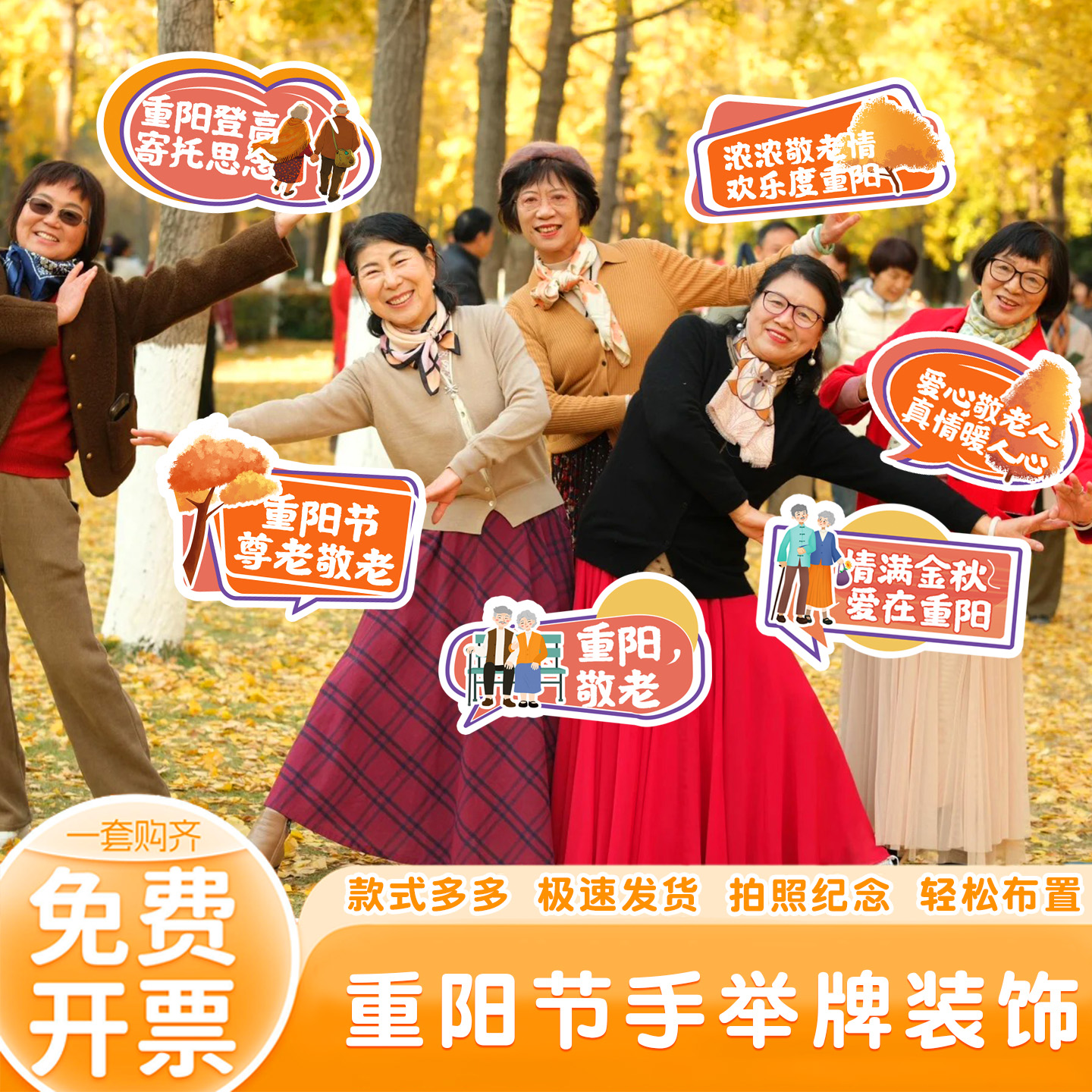99重阳节KT板桌摆件手举牌布置爱敬老院活动氛围场景装 饰拍照道具