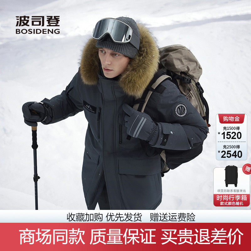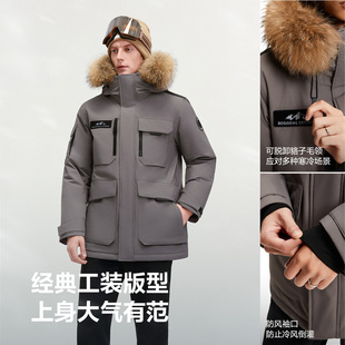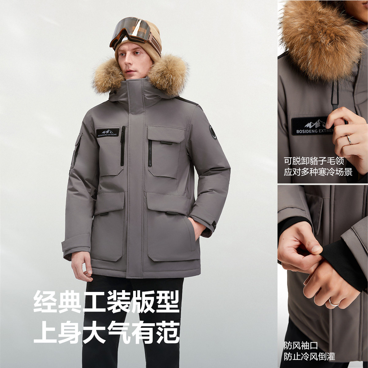 户外抗寒加厚情侣鹅绒羽绒服 工装 波司登极寒羽绒男中长款 2025新款