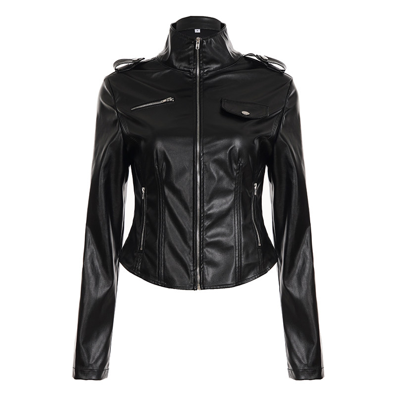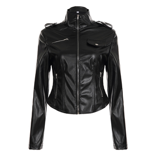 黑色PU皮革夹克轻朋克外套女 机车风收腰修身 ROCKMORE 酷帅街头