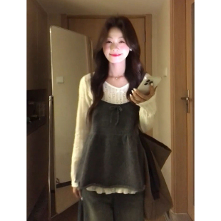 上衣套装 减龄小个子针织软糯背心吊带叠穿设计感2025新款 镂空长袖