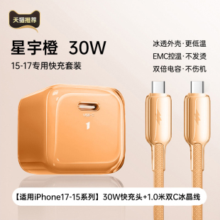 typec冰透14数据线手机30w 第一卫适用苹果17充电器线iPhone16promax插头40W动态15氮化镓快充套装 45W冰晶
