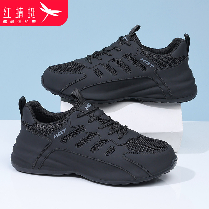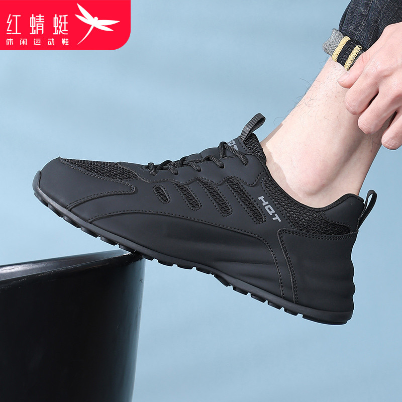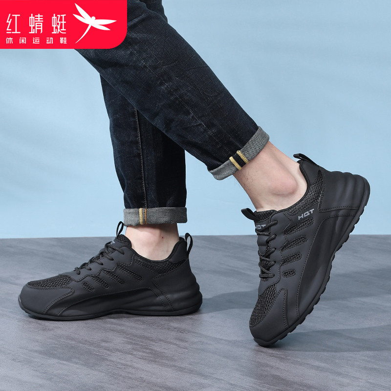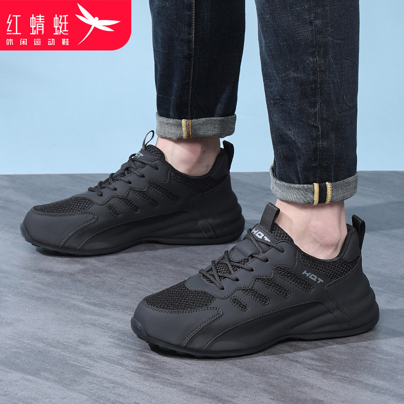 男士 春季 休闲运动鞋 网面透气软底黑色鞋 红蜻蜓男鞋 子大码 2026新款