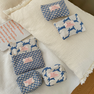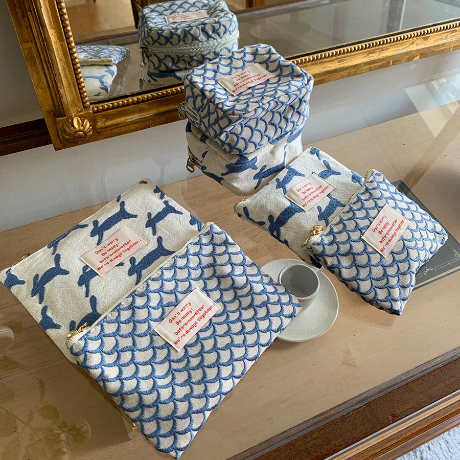 thefifthmoon卡通兔文艺鱼鳞刺绣棉麻gao品质化妆包收纳包零钱包
