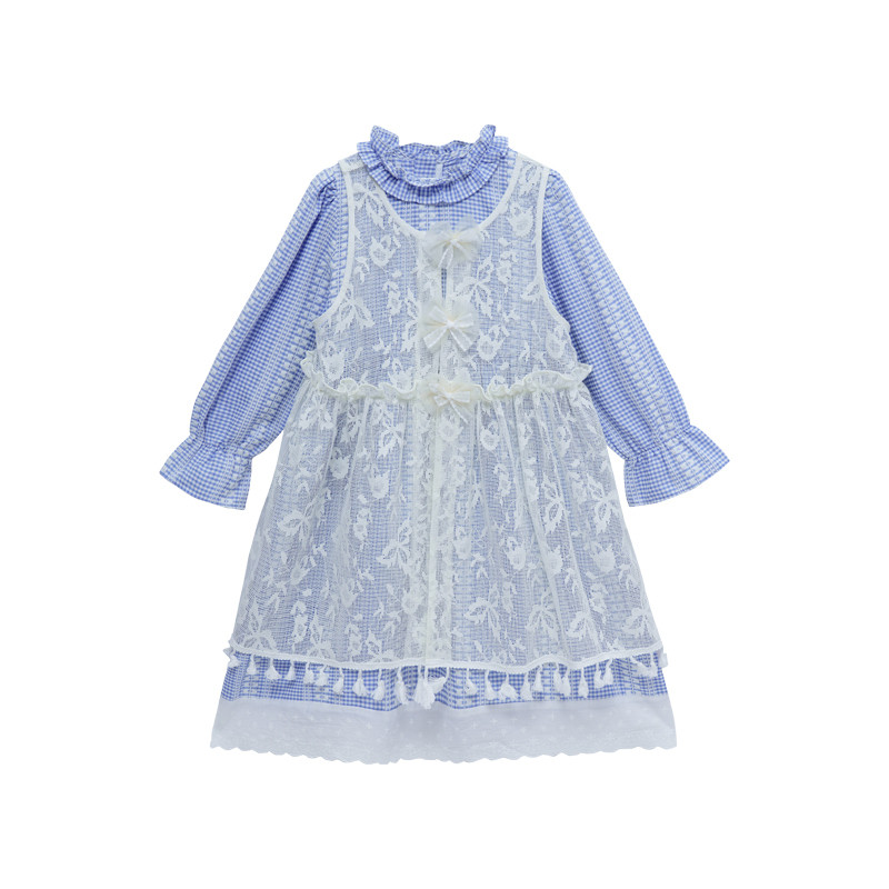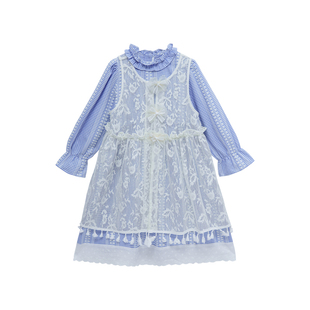 新款 2025秋季 洋气儿童条纹连衣裙蕾丝长裙 女童套装 图图小象童装