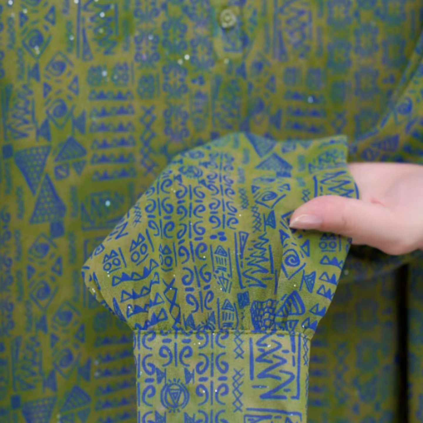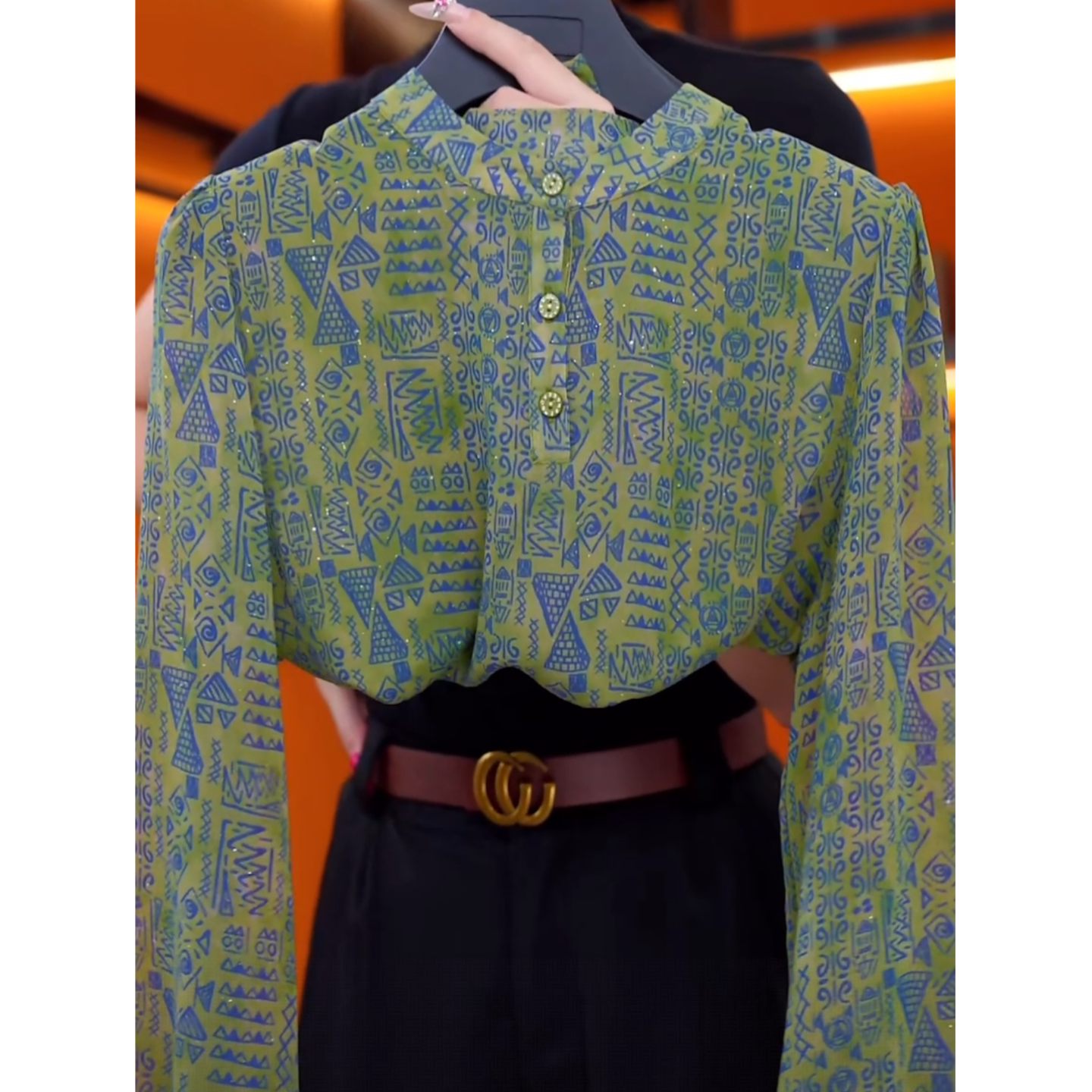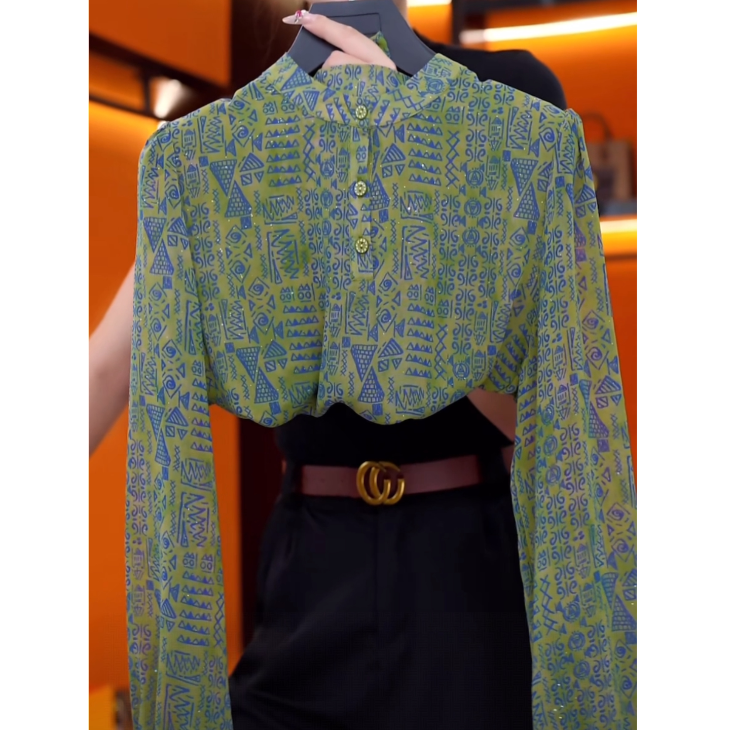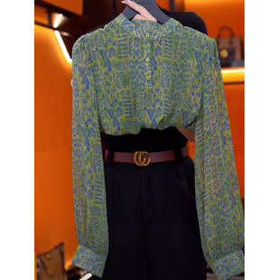 2026新款 女秋季 宽松洋气减龄绿色印花上衣 衬衫 高级感轻奢长袖