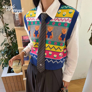 小熊舒适针织背心马甲女款 wigglewiggle25年秋季 个性 韩系时尚 新款