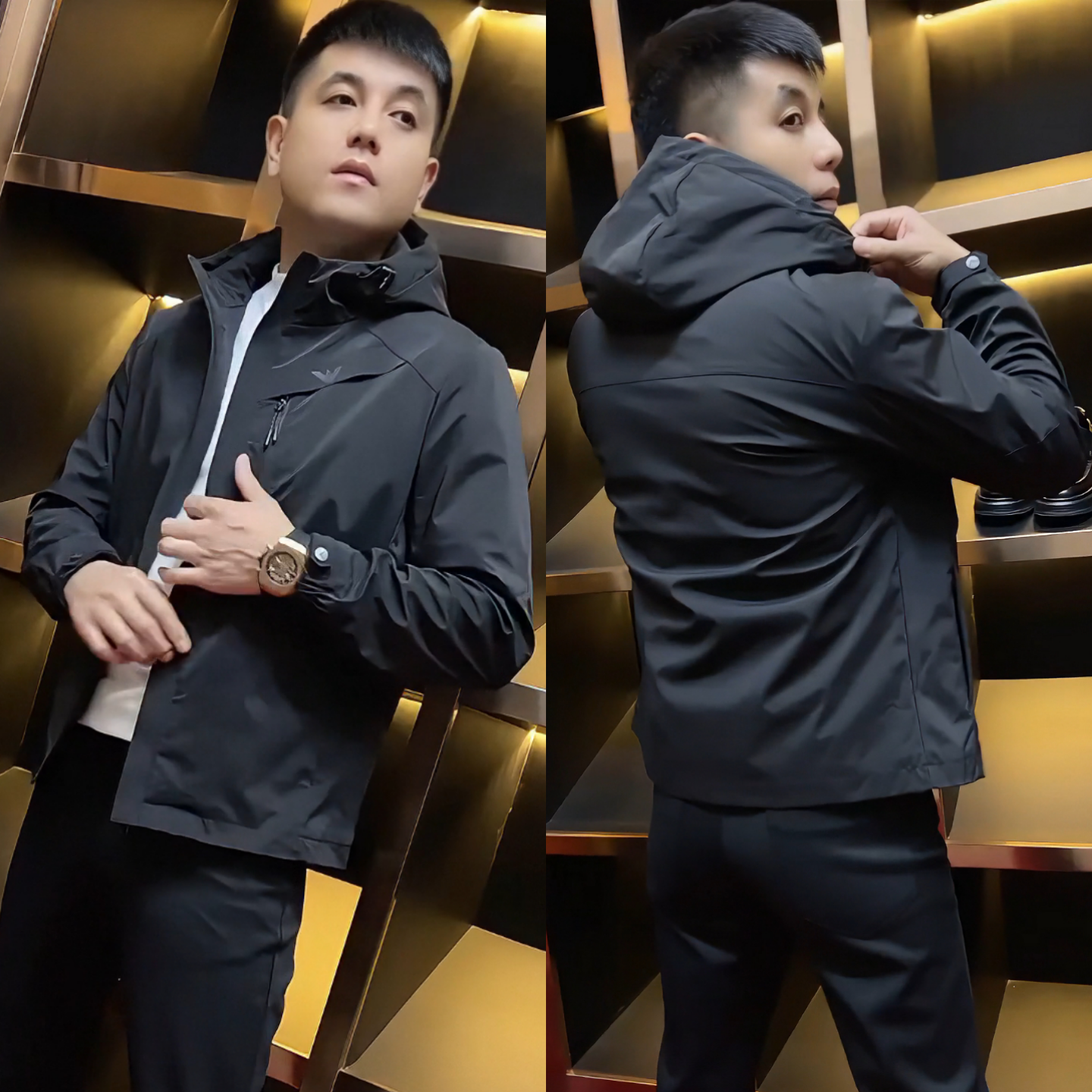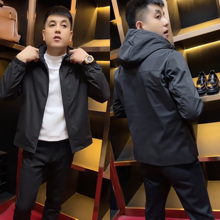 时尚 新款 百搭加棉气质商务潮牌冲锋衣外套潮 连帽夹克2025秋季 男士