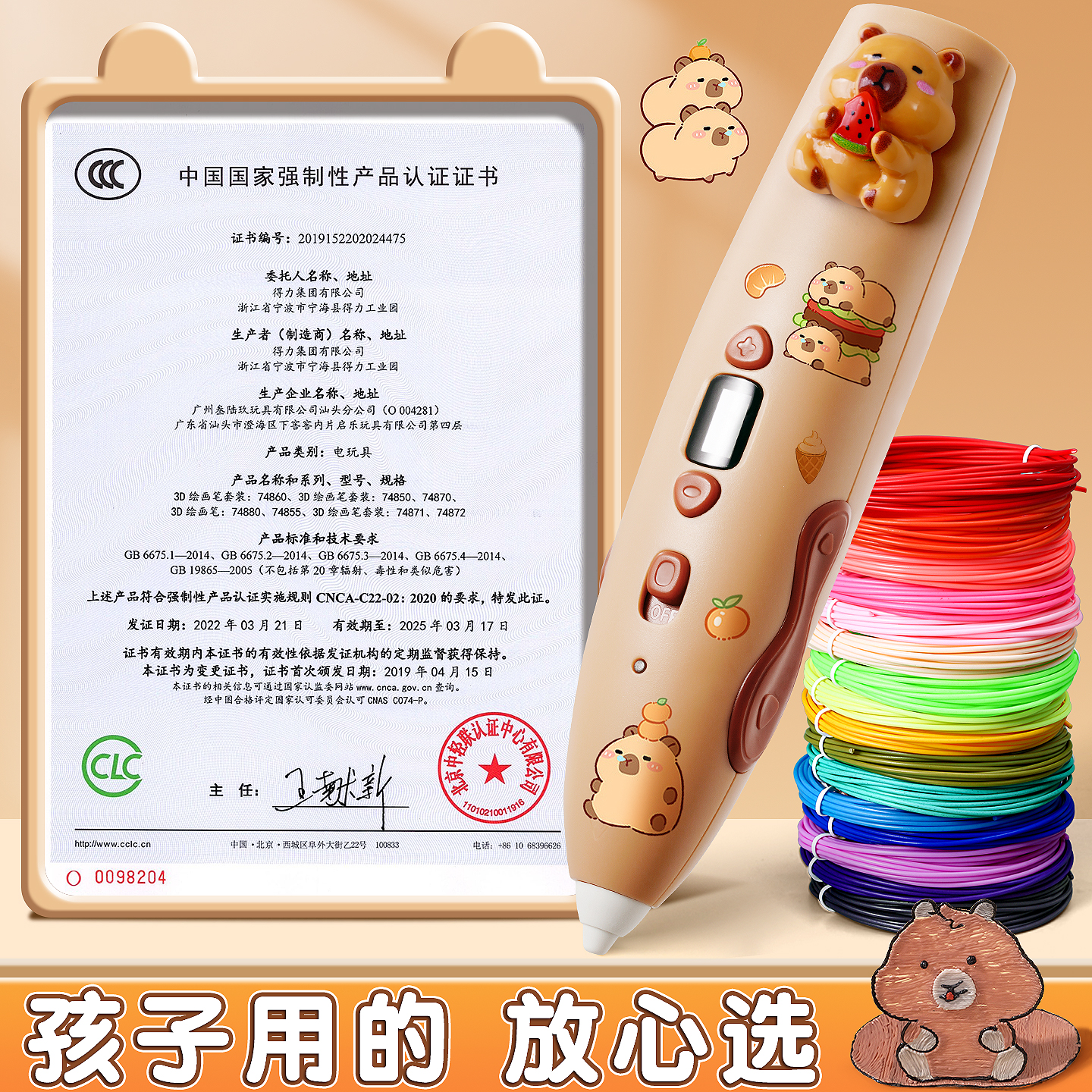 得力卡皮巴拉3D打印笔儿童款 低温不烫手立体涂鸦打印机笔小学生生日礼物多功能益智3d绘画笔神笔马良画笔耗材