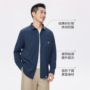 01045864 男长袖 佐丹奴2026年春新款 灯芯绒单口袋通勤休闲翻领衬衫