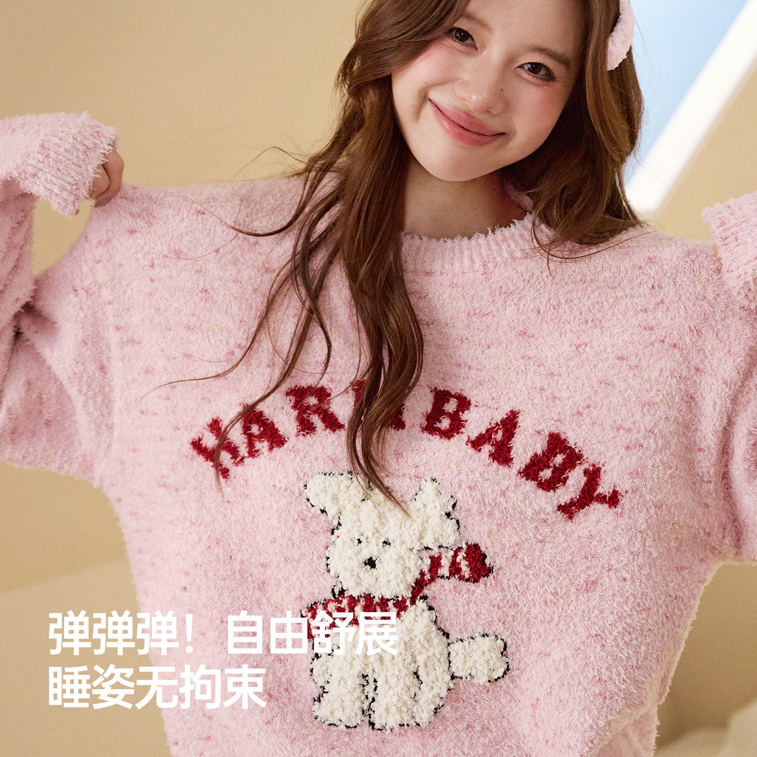 2025新款 内茵半边绒睡衣女秋冬季 可外穿粉色小狗可爱风家居服套装